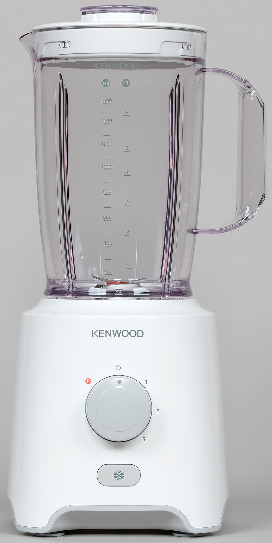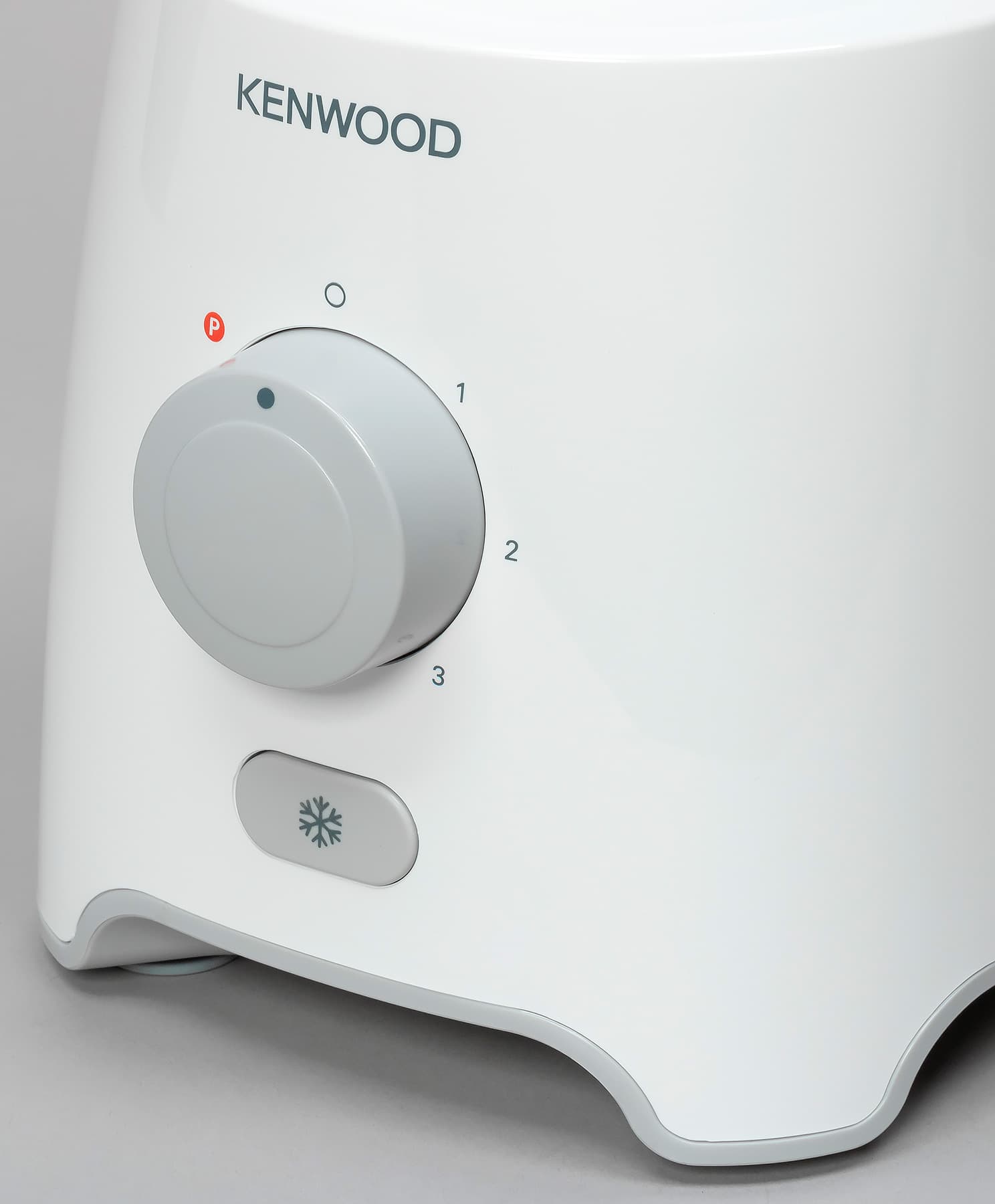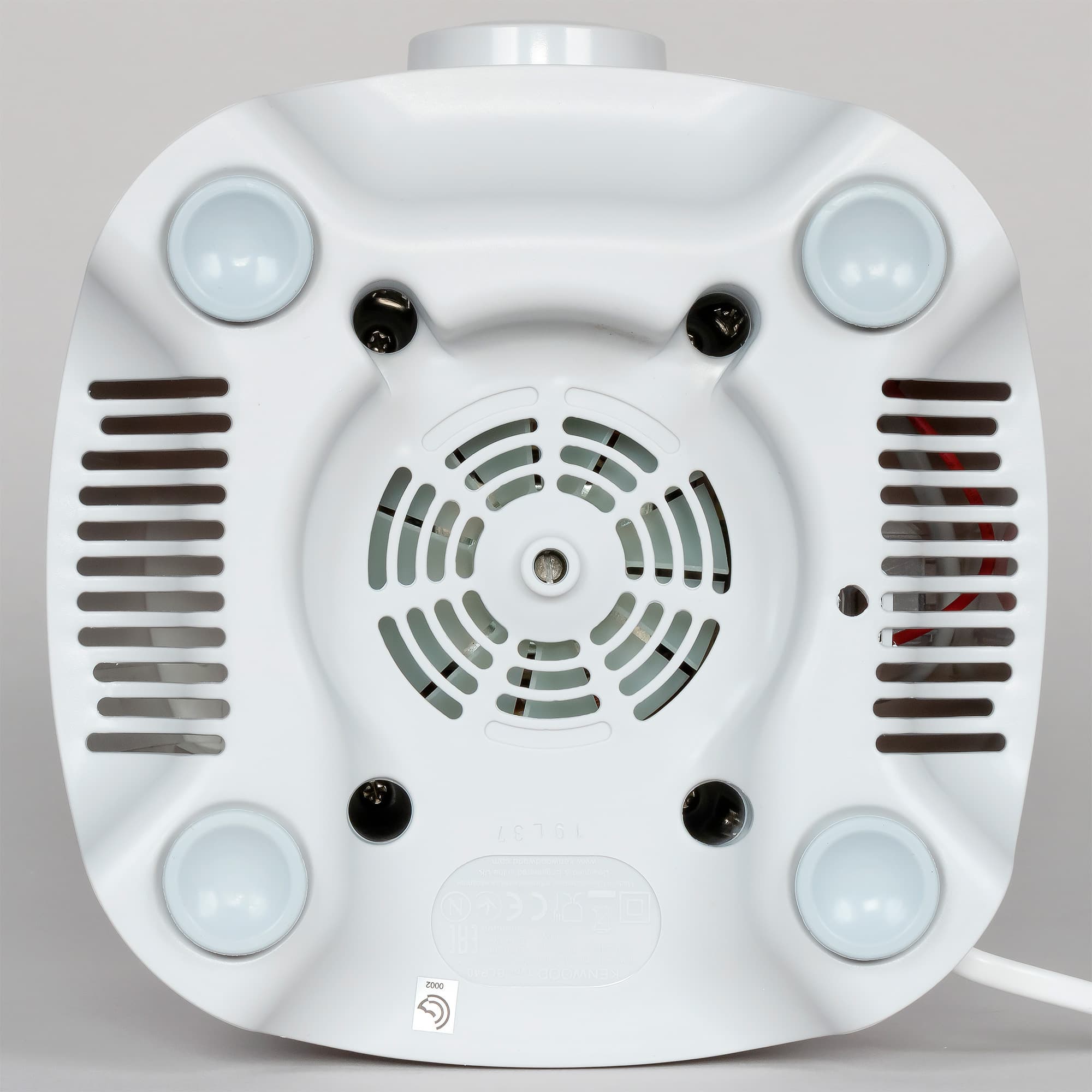 Компания Kenwood позиционирует свой дизайн как лаконичный, сдержанный и элегантный: BLP402WH выглядит, скорее, нейтрально и не будет выделяться в интерьере. Моторный отсек выполнен из белого пластика, на нем мы видим круглую ручку — единственный элемент управления, над ручкой логотип Kenwood. На дне предусмотрен отсек для хранения шнура, но он не очень удобен.