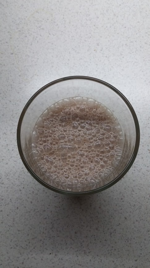 Его мы приготовили по рецепту из инструкции. Залили в стакан 125 мл молока, добавили 40 г мороженого и половину перемолотого в блендере банана. Смесь получилась однородной. Правда, выяснилось, что при добавлении фруктов пузырьков в коктейле становится сильно меньше. И на приготовление хорошо смешанного напитка у нас ушло полторы минуты.