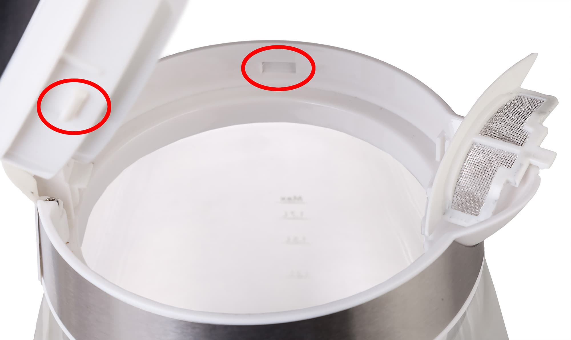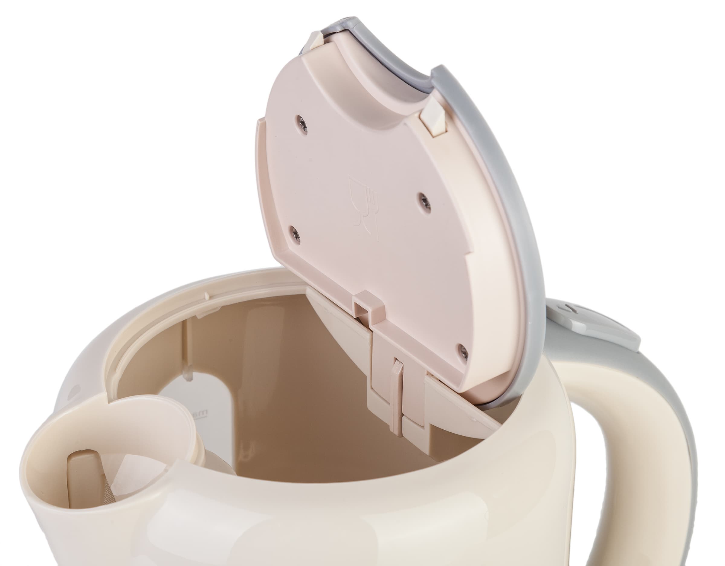 Оценить сложность, качество выполнения и долговечность механизма открывания крышки, не разбирая чайник, нереально — поэтому не стоит и пытаться. Впрочем, иногда здравый смысл способен подсказать элементарные вещи. Например, такая комбинация из паза и зацепа (оба еще и пластиковые) даже на вид надежной не кажется.