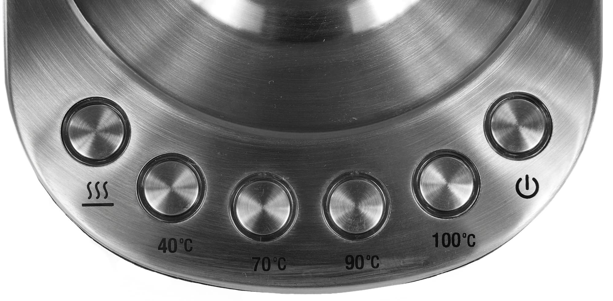 Однако это вынуждает делать их довольно мелкими, что не всем нравится. Поэтому многие производители, наоборот, оставляют на чайнике одну кнопку открытия крышки, а все остальные переносят на базу. Здесь уже можно «разгуляться» и с количеством, и с величиной.