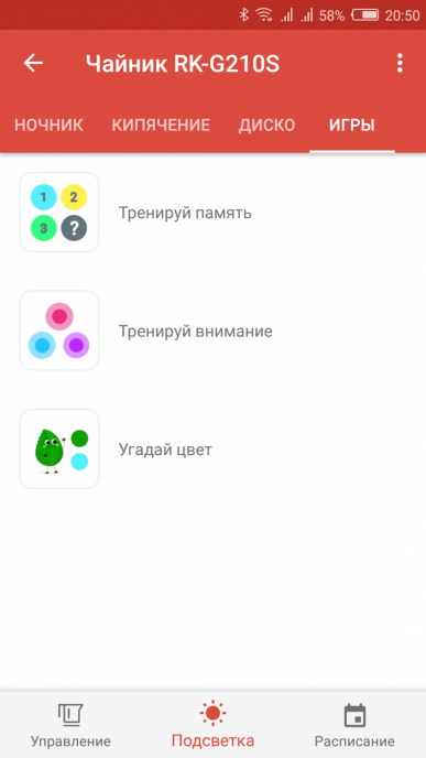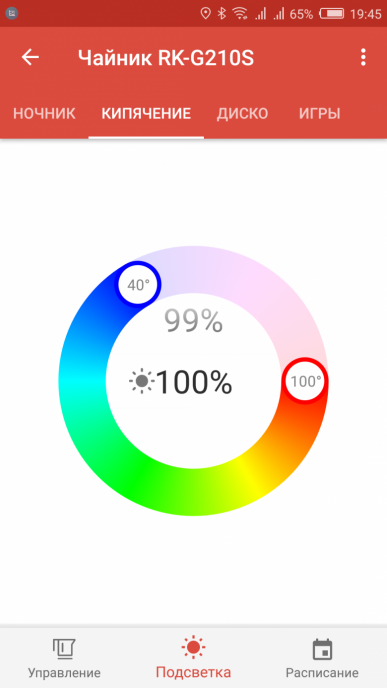 Честно говоря, до определенного времени подсветка в чайниках вызывала у автора этой статьи стойкие ассоциации с заниженными «Приорами» и прочим «колхозным тюнингом». Но компания Redmond смогла меня убедить, что подсветку можно сделать полезной: в их чайниках она изменяет цвет в зависимости от температуры воды, и поэтому уже выглядит более-менее осмысленной функцией: можно издали прикинуть, насколько чайник остыл. В любом случае, наличие или отсутствие подсветки на основные функции чайника влияет крайне мало, но знать о наличии такой опции все-таки нужно — хотя бы для того, чтобы по незнанию ее не купить, вместе с чайником :)