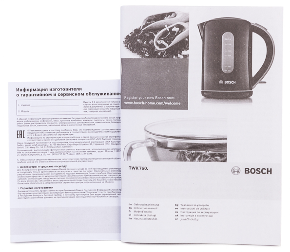 Брошюра на 10 языках, в числе которых присутствует русский, ровно наполовину состоит из всевозможных грозных предупреждений: из не совсем очевидного — что без фильтра от накипи или с незакрытой крышкой, чайник не выключится даже после закипания. Эту шутку мы все знаем (кто не знает — суть состоит в том, что выключается чайник не по достижении определенной температуры воды, как некоторые думают, а именно по факту ее закипания — под закрытой крышкой создается избыточное давление, на которое и реагирует датчик).