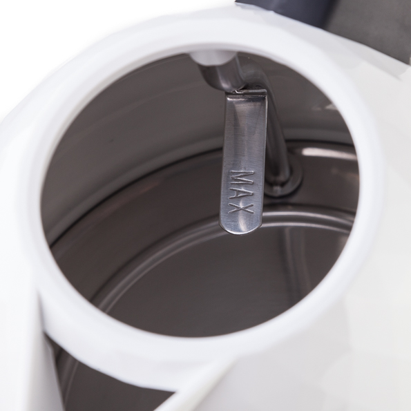 Прозрачная область на корпусе, которая работает индикатором уровня воды, тоже всего одна, как и на модели Hotpoint Ariston. Но она, по крайней мере, расположена в районе ручки — что значительно увеличивает удобство наблюдения за уровнем в процессе заливки чайника.
