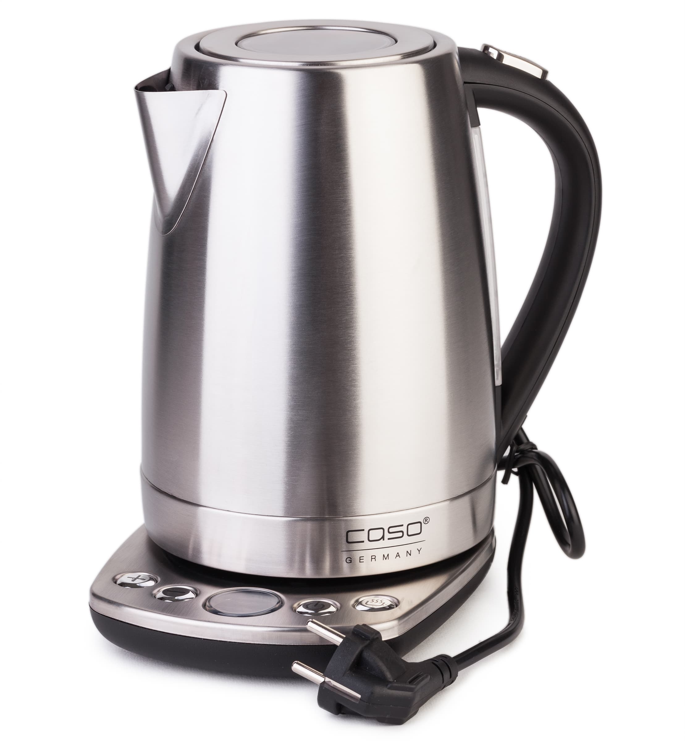В этом случае нельзя не обратить внимание на Caso WK 2200 — нам он понравился за неброский, но элегантный дизайн и управление настолько простое, что инструкцию можно даже не читать. При этом все очень в духе времени: произвольный выбор температуры от 10 до 100 °C с шагом 10 °C, ее поддержание до 2 часов и даже индикация текущей температуры воды.