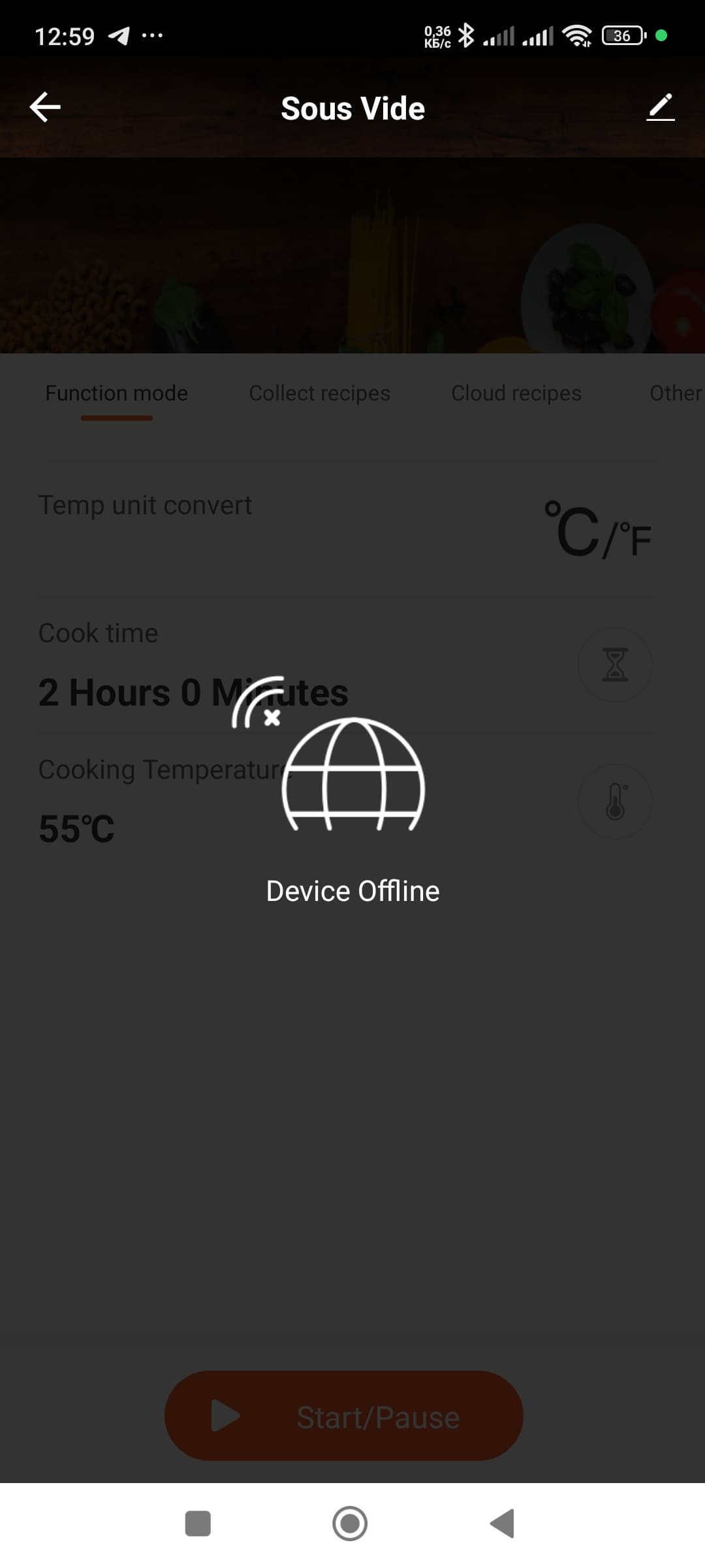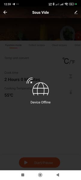 На этом шаге нам пришлось немного помучиться — приложение традиционно оказалось кривоватое, поэтому то слетало название сети, и его невозможно было выбрать из существующего списка сетей, поэтому приходилось вносить вручную, то слетал пароль и всё начиналось заново. К тому же после определенного периода бездействия отключался сувид, и приложение радостно сообщало, что прибора-то и нет — сопрягаться, мол, не с чем. В общем, минут через 15 с танцами, бубнами и богатым русским языком всё произошло: приложение увидело сувид! Но он оказался офлайн! Эту проблему мы быстро решили, налив воды в емкость и включив прибор в обычном режиме.