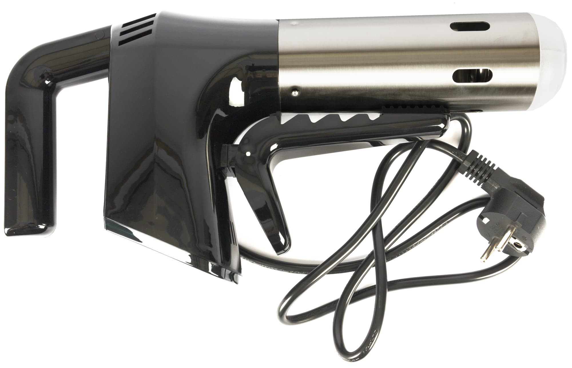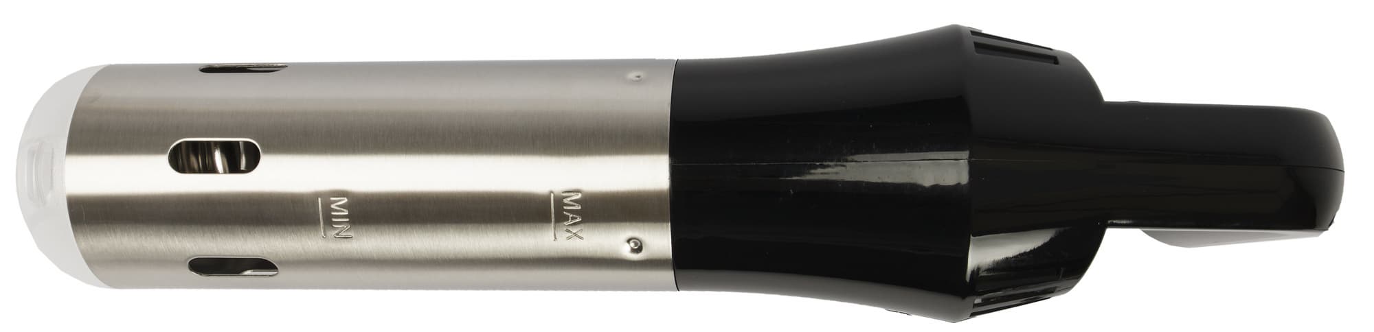 Ручка удобно располагается в ладони, она прямая, что оставляет прибору мало шансов выскользнуть из цепких рук кулинара. Ниже находится массивная управляющая часть прибора, видимо, его «мозг». На скошенном торце корпуса размещена панель управления.