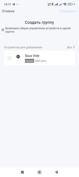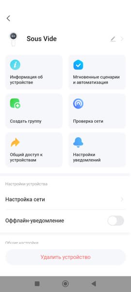 Что еще интересного? Можно переименовать прибор, расшарить доступ к управлению им, а также создать группу устройств умного дома.