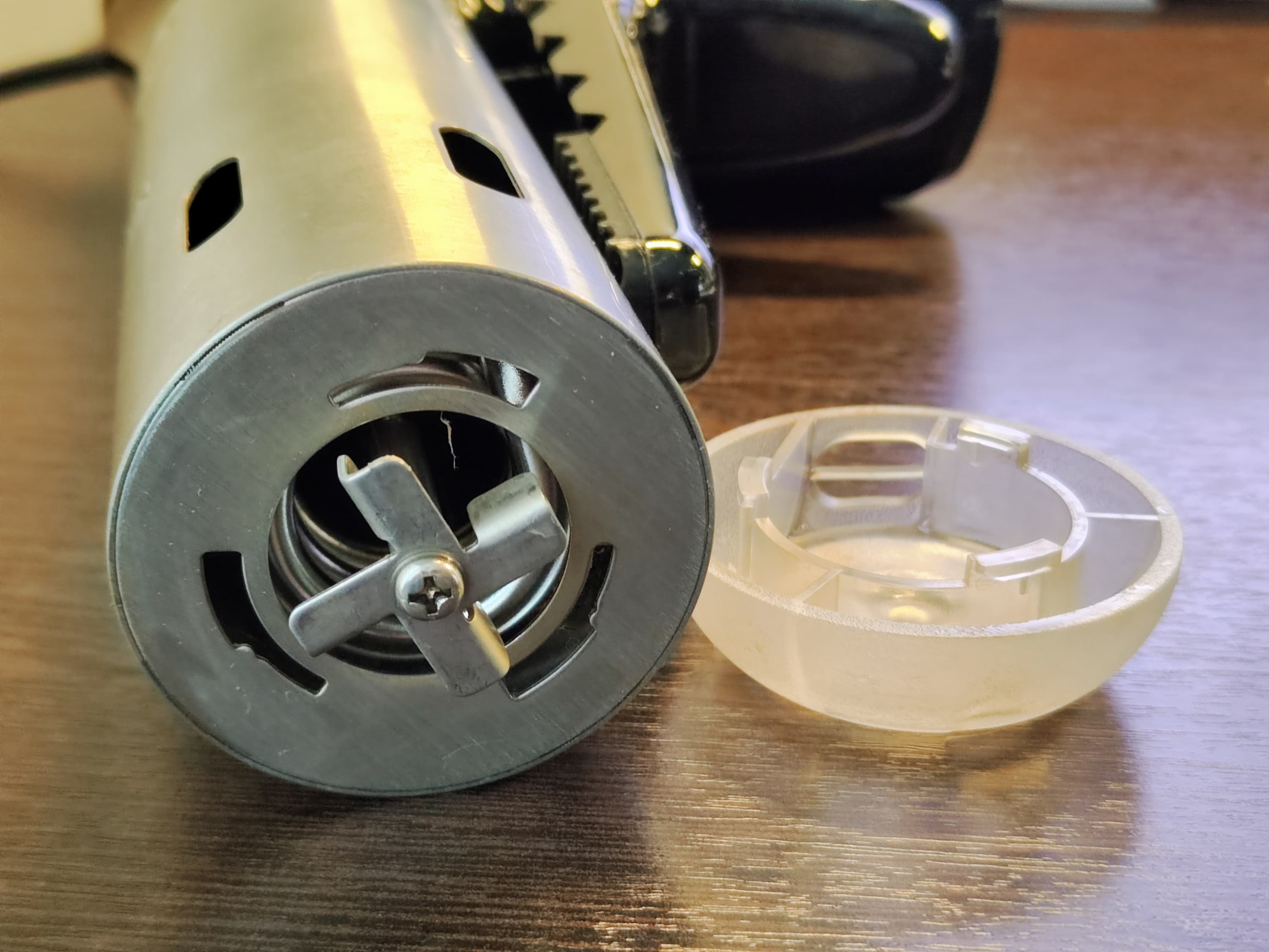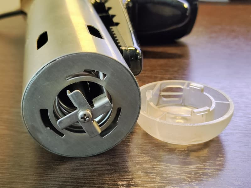 Легким поворотом по часовой стрелке защитная крышка снялась, и мы увидели четырехлопастной винт диаметром 3 см. Длина каждой лопасти около 1 см.