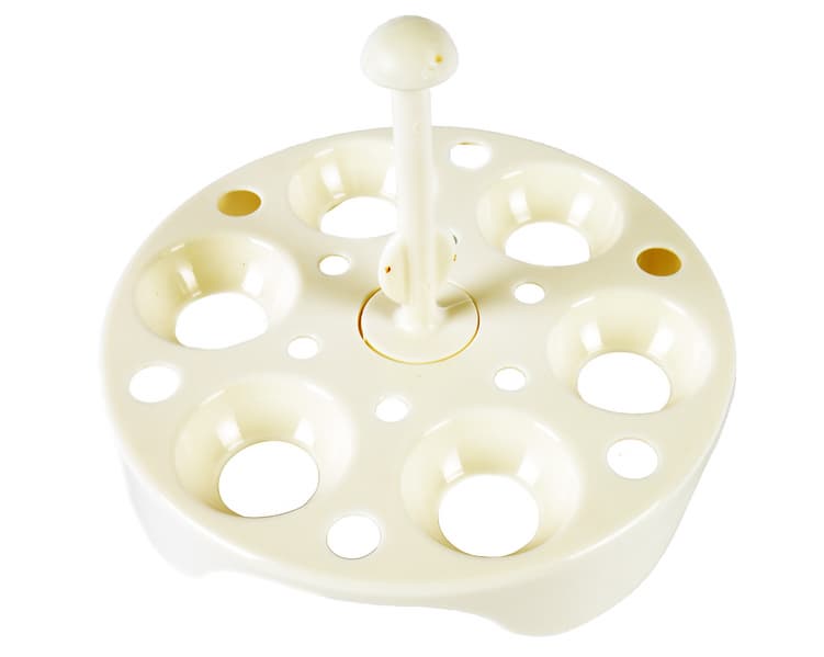Диаметр подставки чуть меньше отверстия колбы — устанавливать и вынимать ее несложно, а полдюжины яиц размещаются в ней свободно.