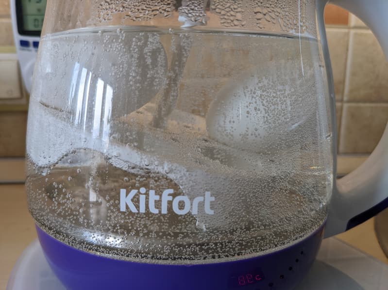Как прибор для кипячения воды Kitfort KT-6130 не преподнес никаких сюрпризов: он исправно доводит до заданной температуры залитую в него жидкость, хотя делает это довольно медленно — сказывается невысокая (850 Вт) мощность прибора.