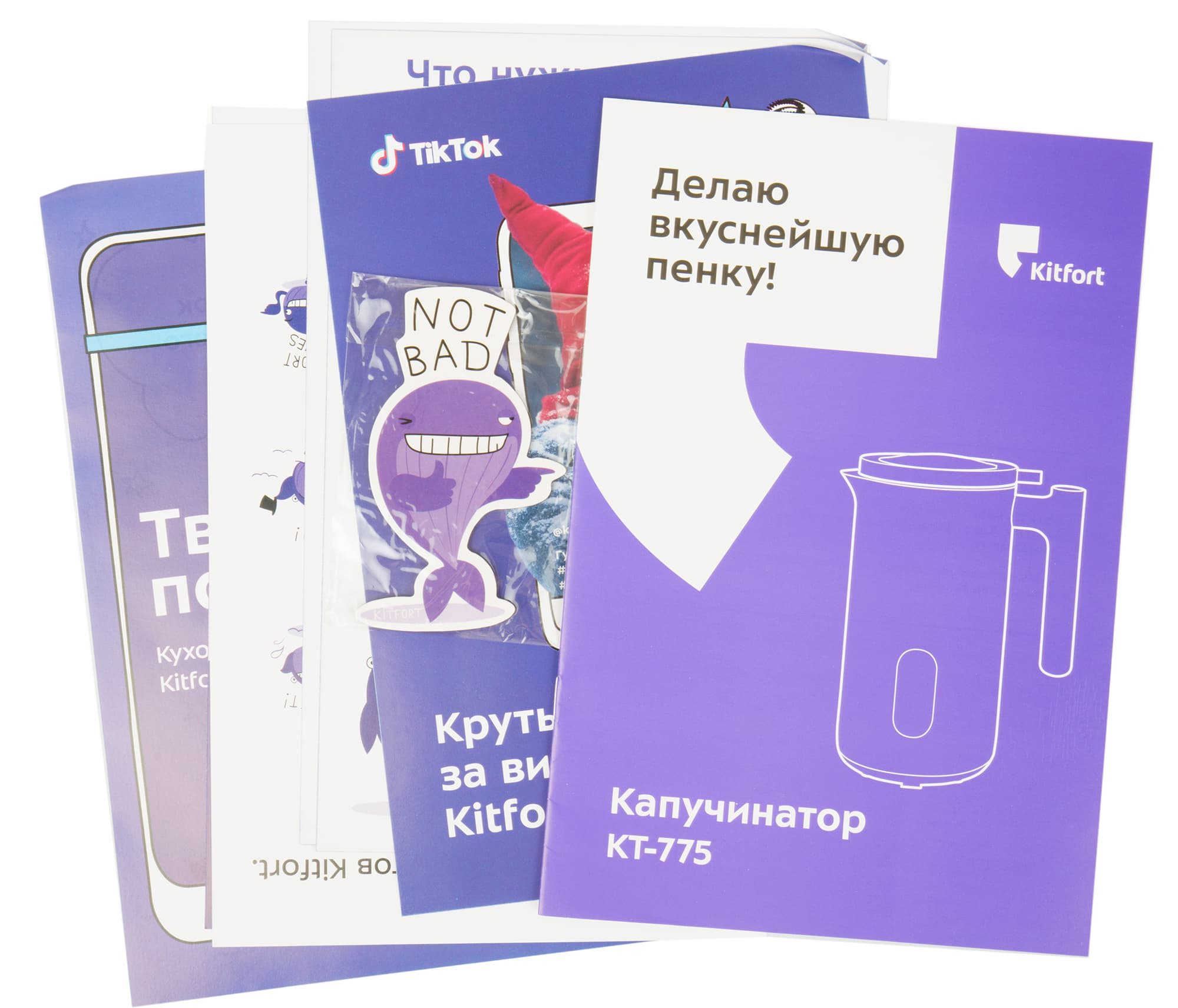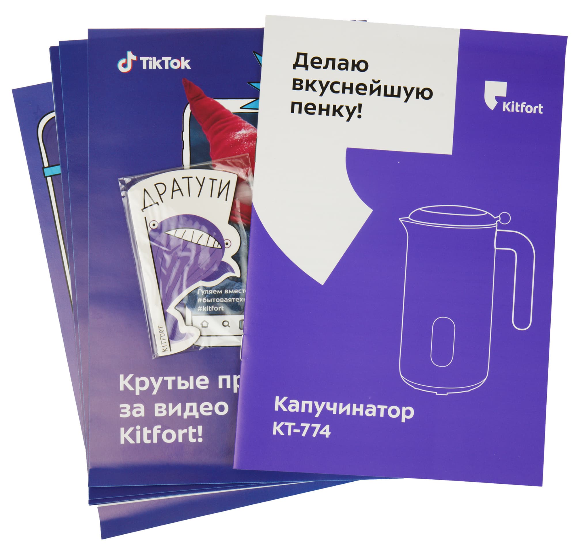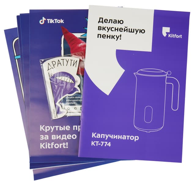 Помимо инструкции в комплекте нашлось множество рекламных листовок, предлагающих поучаствовать в рекламе продукции Kitfort — написать отзыв, снять видео-обзор и так далее. За участие в подобной активности можно получить призы и подарки.