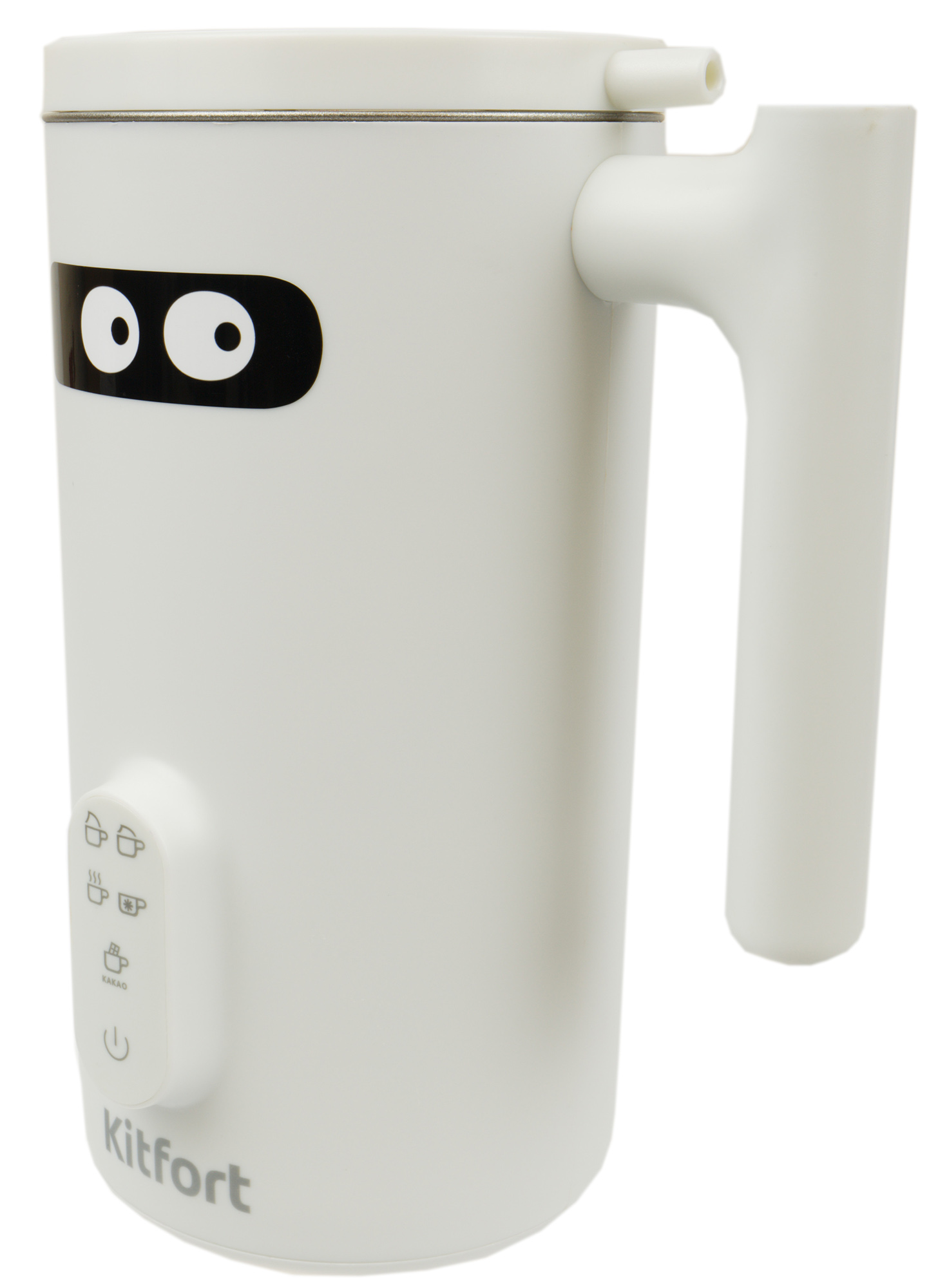 На передней стороне корпуса мы видим наклейку с глазами. Снизу расположены панель управления и логотип Kitfort.