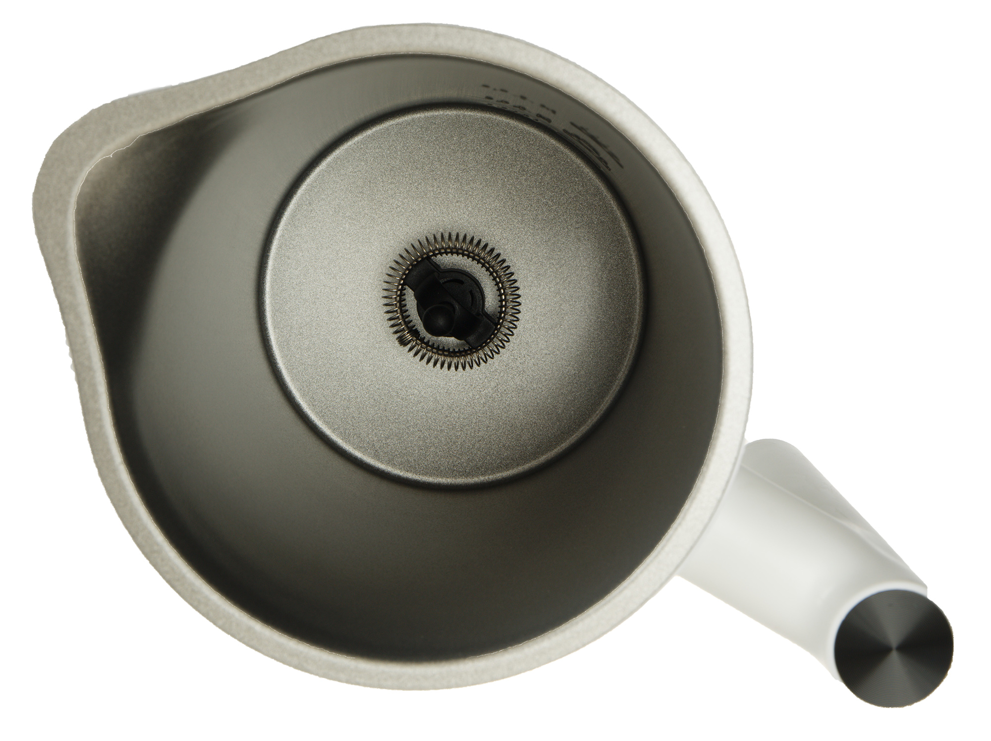 На боковых стенках корпуса нанесены отметки, соответствующие минимальному и максимальному объему молока. При этом отметки Max тут две: нижняя соответствует подогреву молока со взбиванием, а верхняя — просто подогреву.