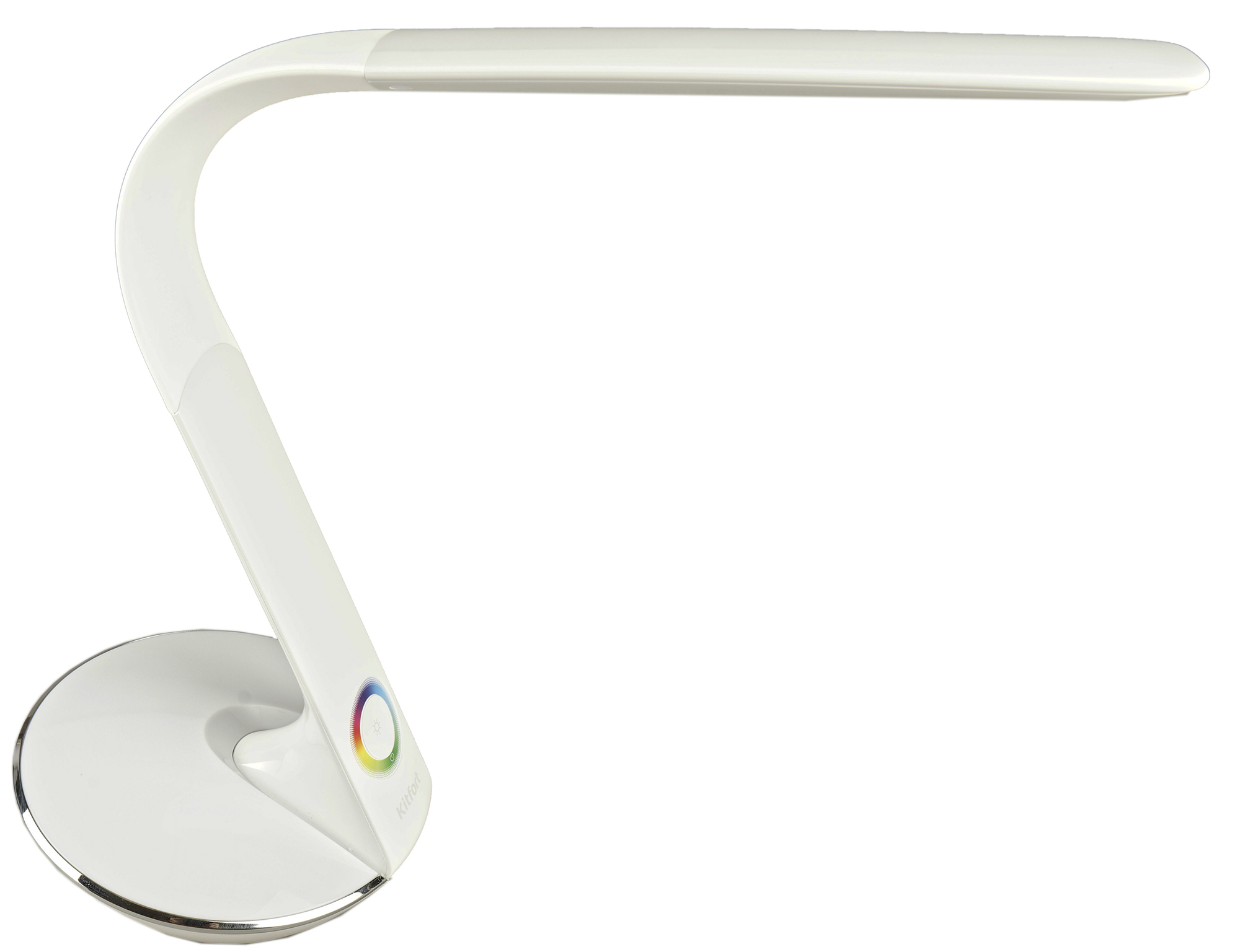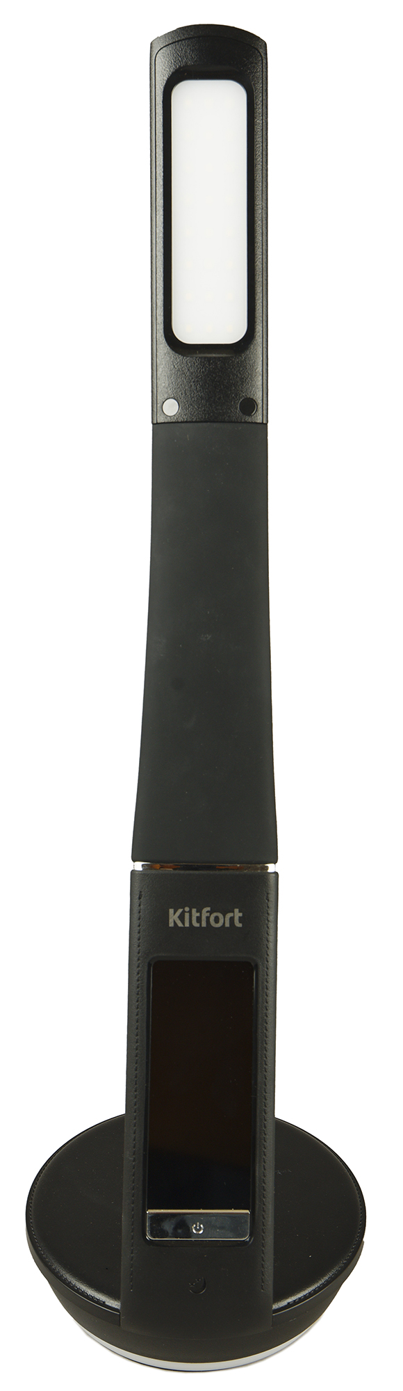 Начнем с настольной лампы Kitfort KT-3327. Светильник с сенсорным управлением работает в режиме холодного света, имеет 5 уровней яркости и функцию ночника с RGB-подсветкой.