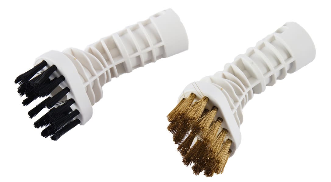 Для стойких загрязнений, требующих механического воздействия, к Kitfort KT-1016 прилагаются нейлоновая и латунная щетки. Нейлоновая щетка применяется там, где латунная может оставить царапины.