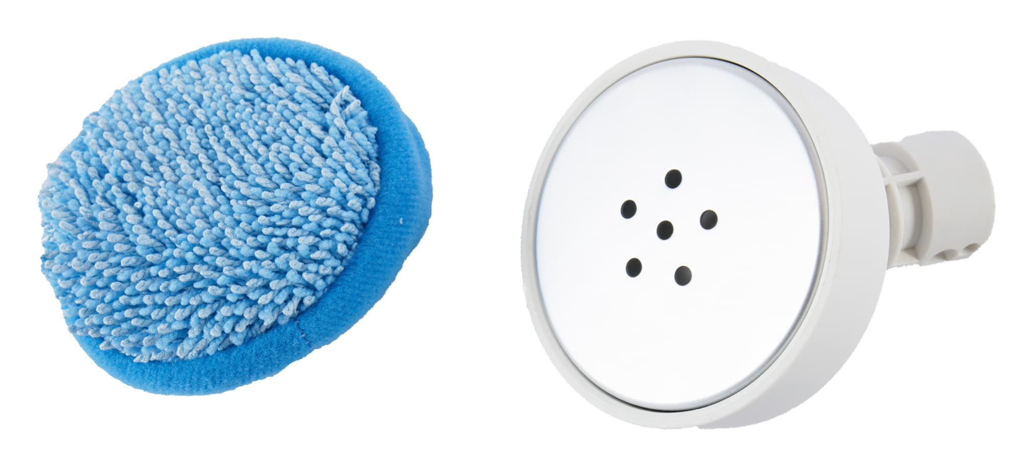 Для уборки или отпаривания локальных загрязнений или небольших вещей в комплект входит маленькая круглая насадка с тряпкой.