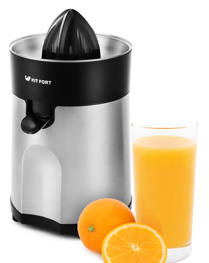 Соковыжималка для цитрусовых Kitfort KT-1113 оказалась стандартным по конструкции прибором, отлично справляющимся со своим предназначением. Она симпатично выглядит, к сборке и качеству обработки материалов мы не можем предъявить ни единой претензии. Сборка-разборка, уход и эксплуатация просты и не отнимают много времени. Соковыжималка оснащена носиком с резиновым уплотнителем. Носик может быть поднят — в этом случае сок перестанет вытекать, и можно установить новую тару для слива сока или заняться очисткой прибора. Также к несомненным плюсам соковыжималки отнесем ее стоимость.