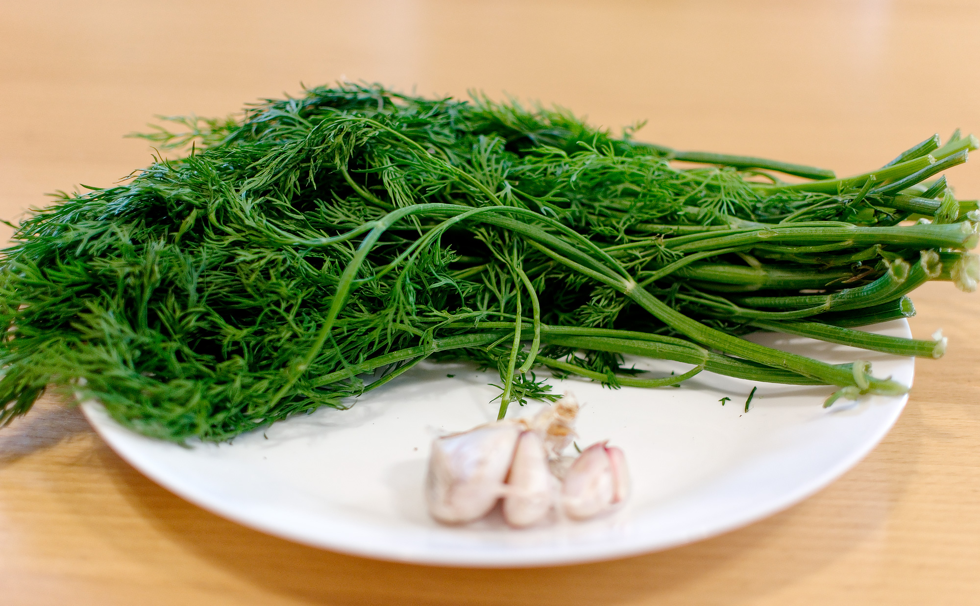 Не привыкнув отступать и кое-что заподозрив, мы решили повторить эксперимент с зеленью, несколько уменьшив ее разнообразие: оставили один укроп, чуть сдобрив его чесноком.