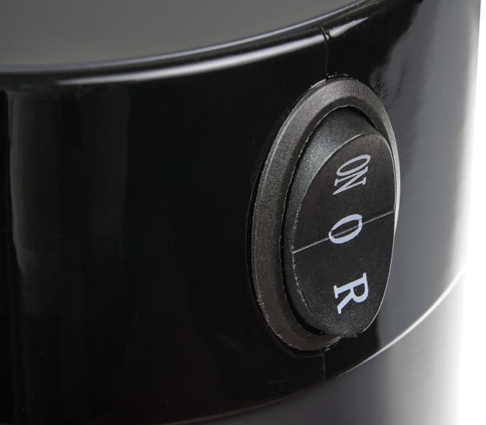 Прибор оформлен в черном цвете, все прозрачные детали затемнены — выглядит нейтрально и даже благородно. Кнопка включения/выключения находится сверху боковой стороны корпуса. Из нижней части выходит шнур электропитания. Длина шнура стандартна, не очень велика, зато он не будет лежать на столе свернувшейся и мешающей змейкой.