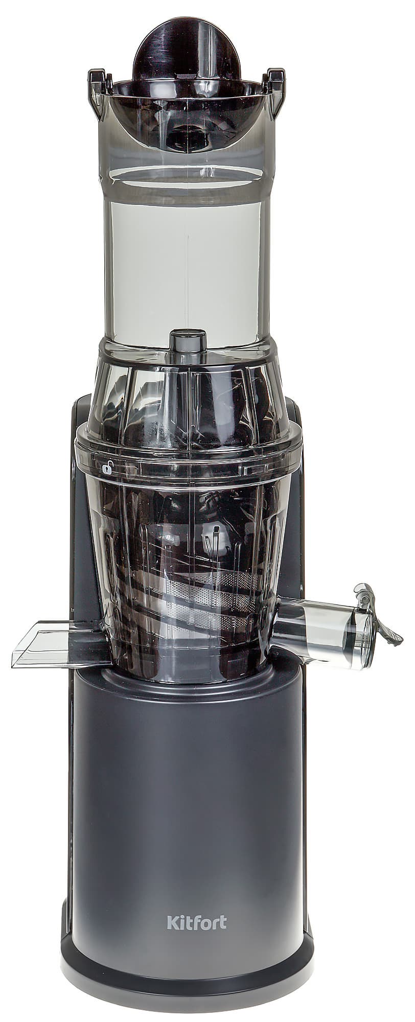 Подготовка соковыжималки Kitfort KT-1118 к работе несложна, быстро собрать и зафиксировать детали помогут метки и указатели, нанесенные на отдельные детали и поверхности корпуса.
