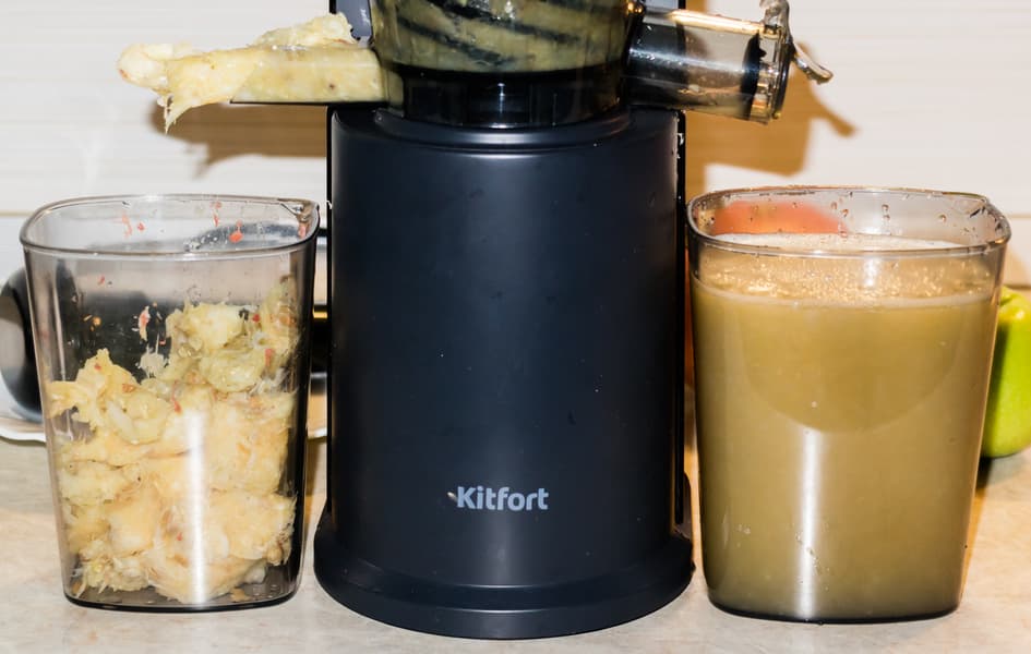 Не следует забывать, что на эффективность отжима сока может влиять множество факторов, главный из которых (за исключением качеств самой соковыжималки) — качество исходного сырья. В случае с Kitfort KT-1118 на результаты сильно повлиял тест по отжиму сока из яблок — в этот раз они оказались чрезвычайно сочными. Морковь, к сожалению, оказалась не столь блестящего качества и нивелировала прекрасные результаты теста с яблоками: в целом жмых был достаточно сухим. Несомненно, оказали некоторое влияние на результаты и два приличных куска грейпфрута, которые застряли наверху и сок из них не был отжат. В общем, встречали мы и куда лучшие, но и куда худшие результаты, так что Kitfort KT-1118 — основательный и твердый середнячок. А если взять в расчет стоимость прибора, то оценка сразу возрастает на балл.
