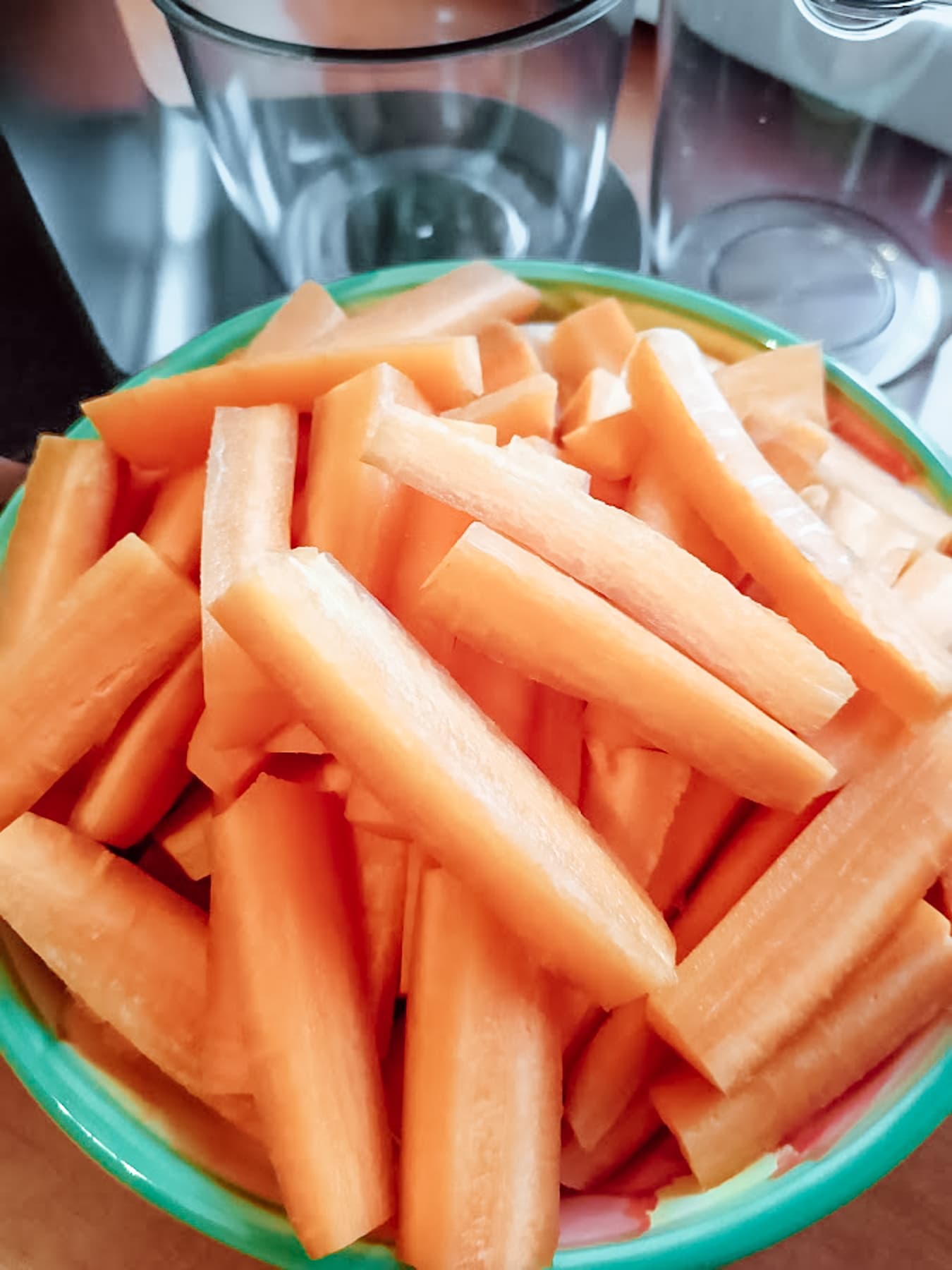 Вообще-то инструкцией запрещено отжимать сок из моркови, но мы в iXBT любим риск, а ещё больше любим свою методику, выработанную годами, так что нарезали корнеплоды на длинные дольки и приступили, помолясь.