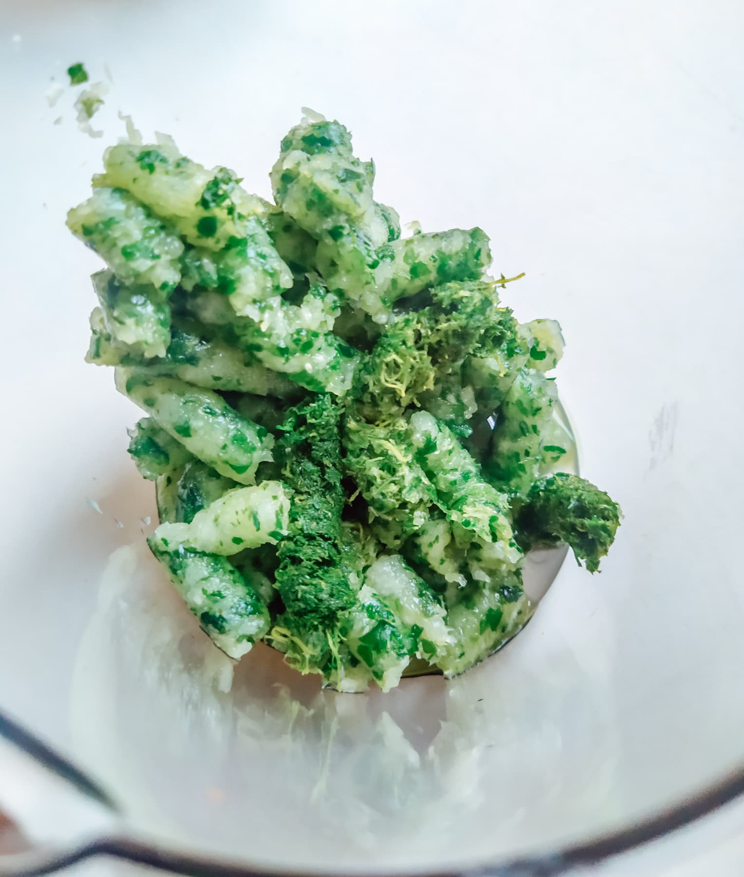 Из 510 граммов сырья получили 340 граммов сока. Огуречный жмых мокрый, но не течет, а зелень спрессовалась в плотные желтые колбаски. После разборки шнека мы не обнаружили намотавшихся на него стеблей — все истерлось в труху.