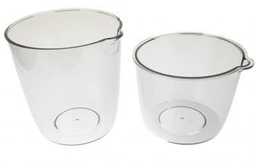 Контейнеры для сока (650 мл) и для жмыха (1000 мл) выполнены из того же материала, что и отжимной блок, — на вид не очень прочного. У каждого есть носик. На емкость для сока нанесены риски (от 100 до 500 мл с шагом 50 мл). Стаканы имеют одинаковую форму, так что один вставляется в другой, экономя место для хранения. Лоток и толкатель — из того же прочного черного пластика, что и зажим. Лоток такой маленький, что размещать на нем продукты бессмысленно — проще уж сразу забрасывать в горловину по кусочку.
