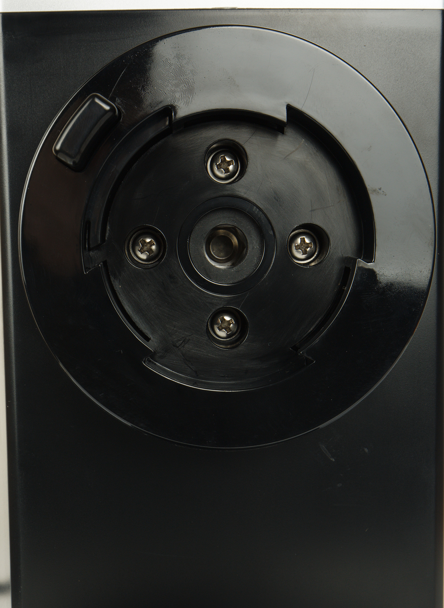Пустой отжимной блок вставлется в моторный блок под углом около 30 °C и закрепляется поворотом против часовой стрелки до щелчка, затем уже в него устанавливаются шнек, фильтр и зажим. Чтобы разобрать соковыжималку, достаточно нажать на кнопку слева и повернуть отжимной блок по часовой стрелке.