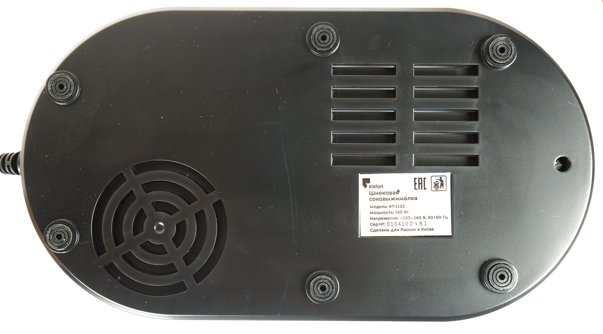 На дне корпуса — вентиляционные отверстия и шильдик с технической информацией. Стоит прибор на шести прорезиненных ножках.