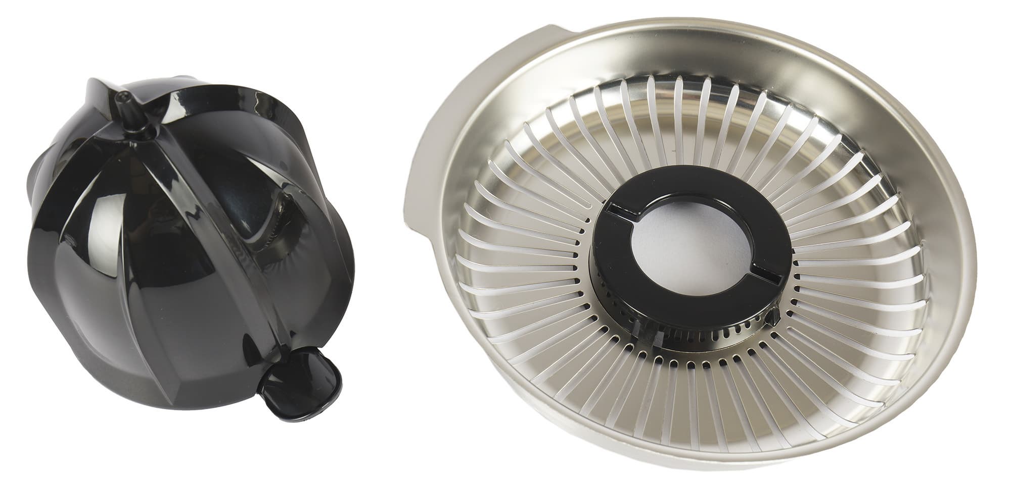 В комплекте обнаружилось два конуса для цитрусовых — большой и малый.