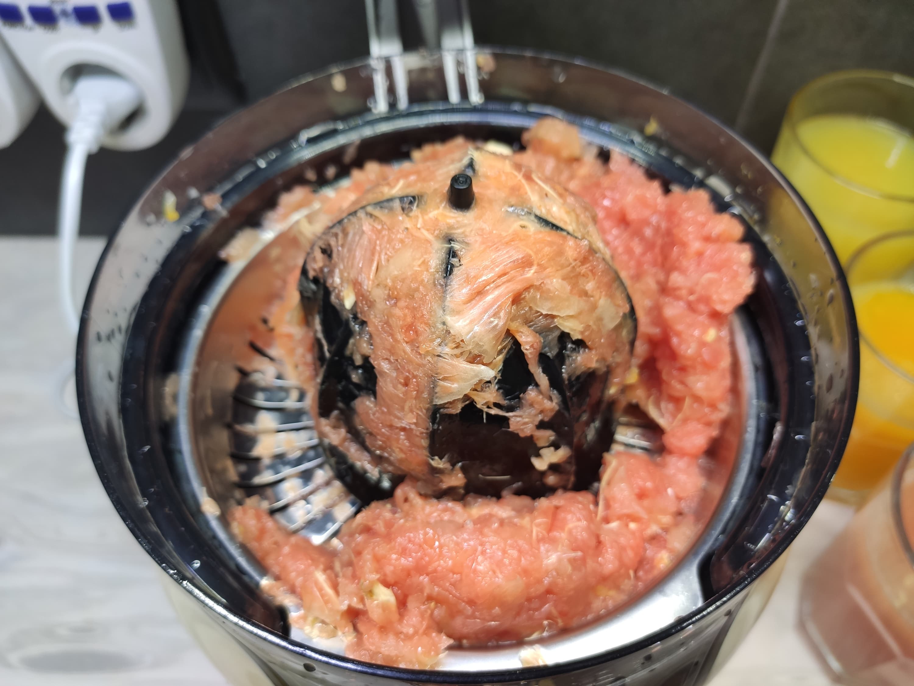 Сок оказался отличного качества, с малым количеством мякоти. Почти вся мякоть и все крупные косточки задержалась в решетках фильтра или перед каналом слива сока.