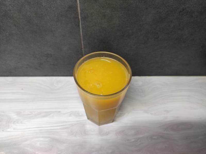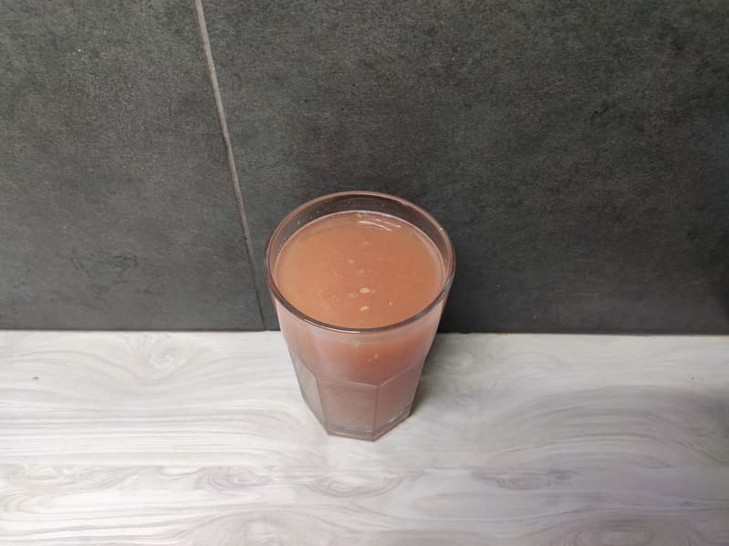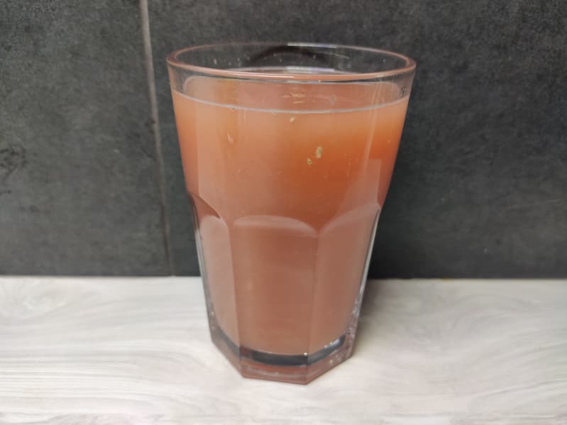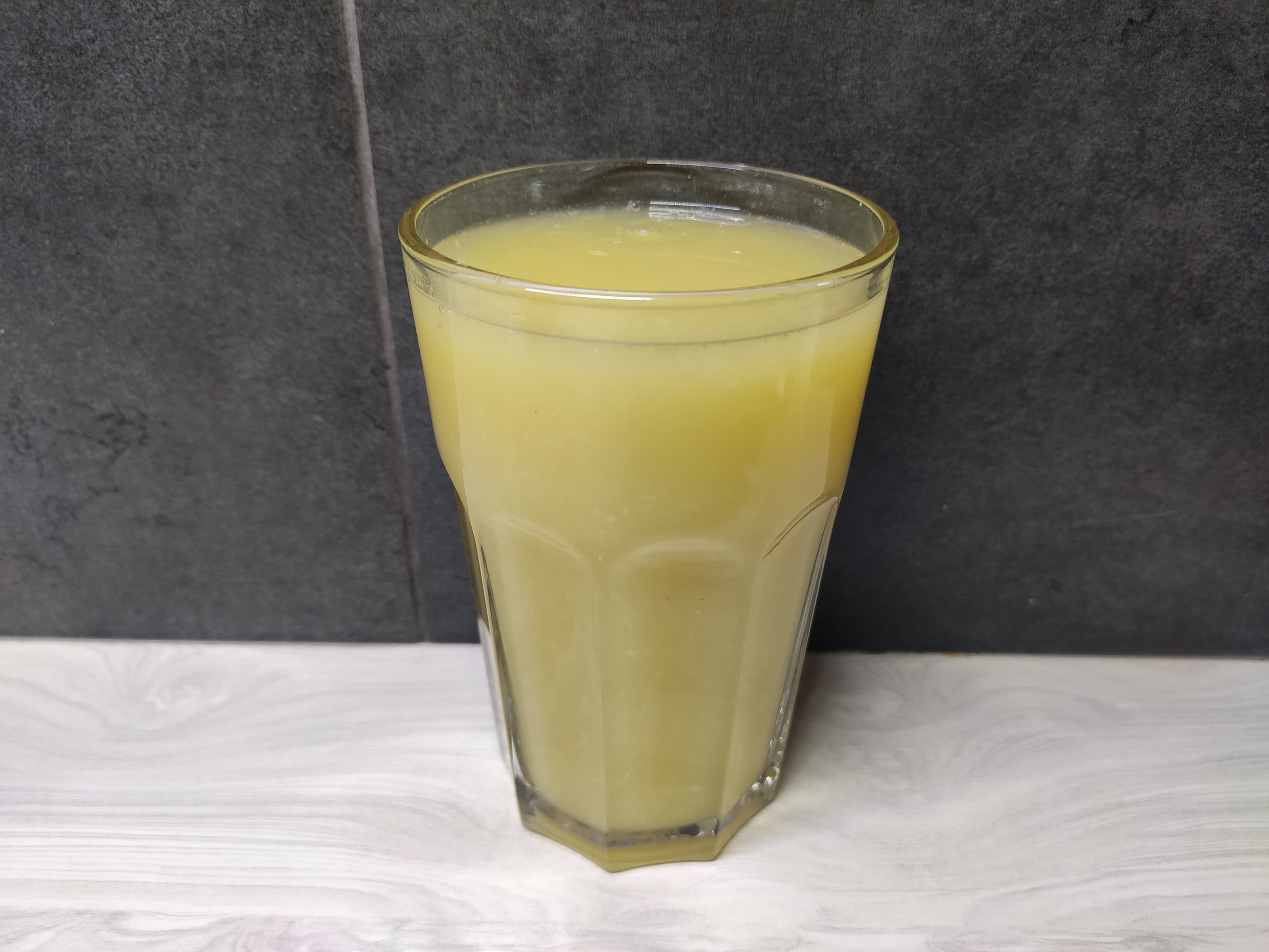 Качество готового напитка мы снова оцениваем как высокое. Правда, на этот раз в сок проникли мелкие частицы косточек.