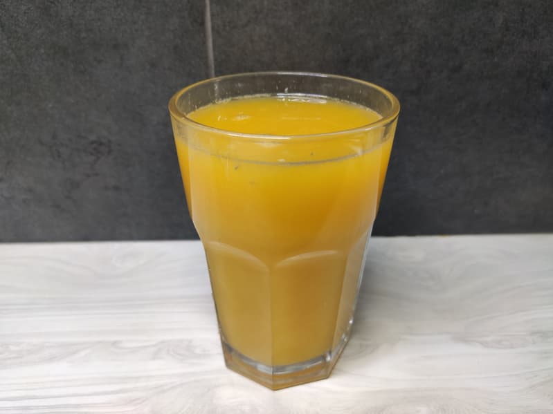 Сок оказался однородный, без заметных кусочков мякоти и без косточек.