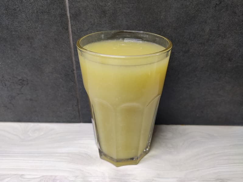 Вес получившегося сока — 501 г, или 50% выхода. Это отличный результат для лимонов. Впрочем, оно и не удивительно — на кожуре практически не осталось волокон фрукта.
