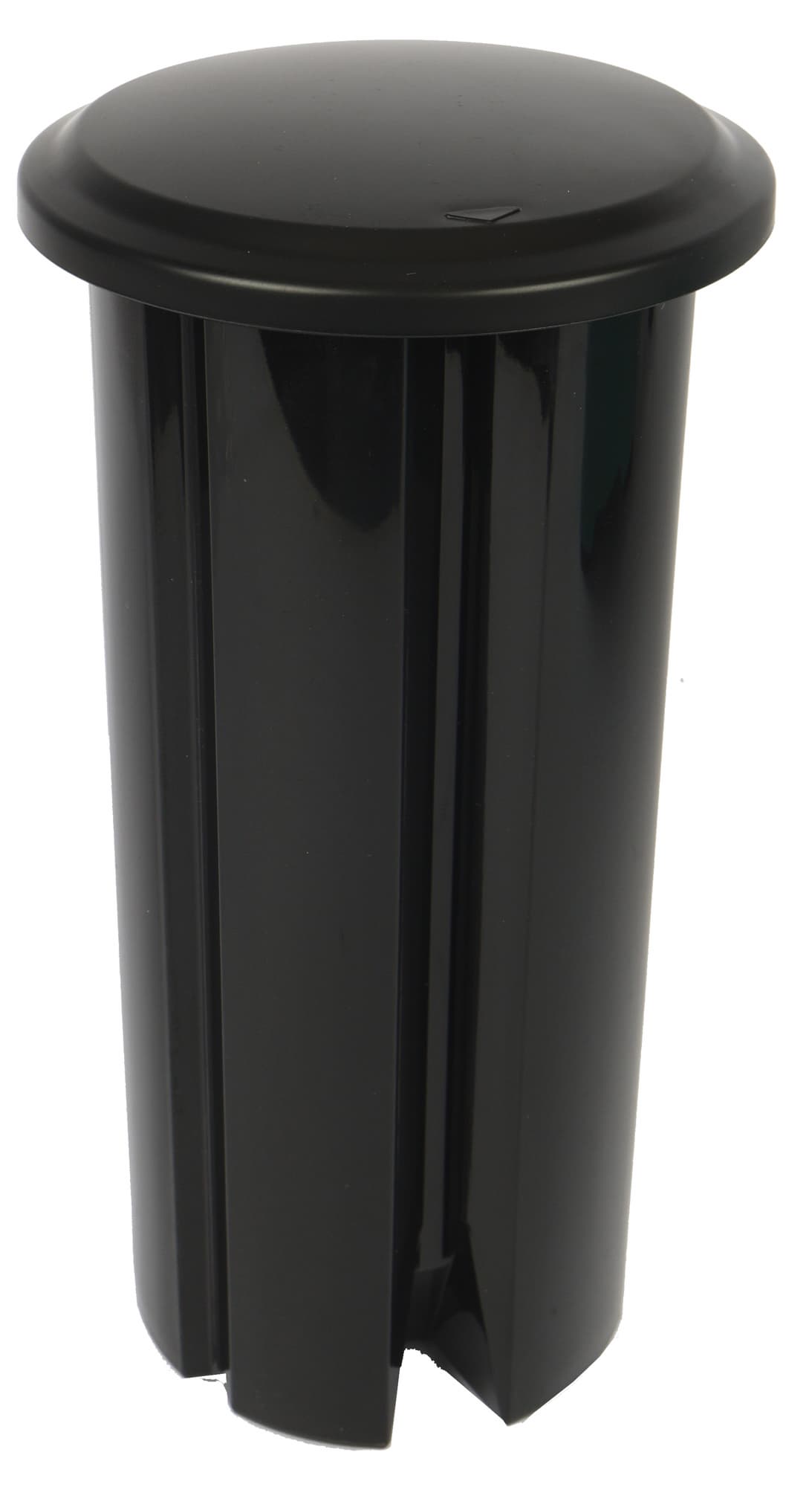 Для проталкивания сырья предусмотрен массивный толкатель из черного пластика. Он вставляется в крышку путем совмещения направляющих в горловине с пазом на самом толкателе.