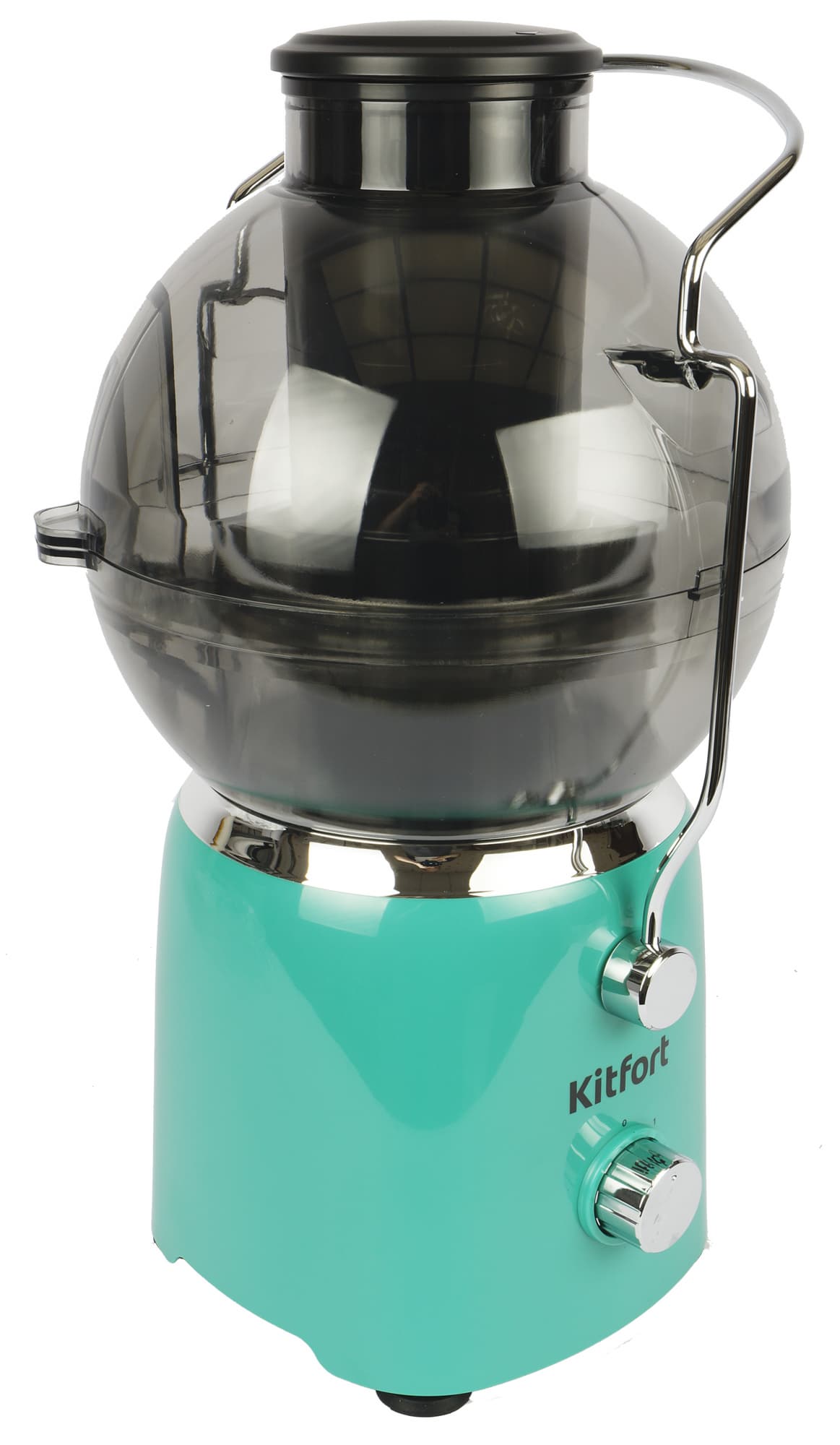 Корпус соковыжималки Kitfort KT-1144 смотрится ярко и с претензией. Такой прибор явно не затеряется в интерьере и будет обращать на себя внимание. Устройство выпускается в трех цветах: красном, желтом и зеленом. Нам достался третий вариант (KT-1144-2). Оттенок зеленого — холодный.
