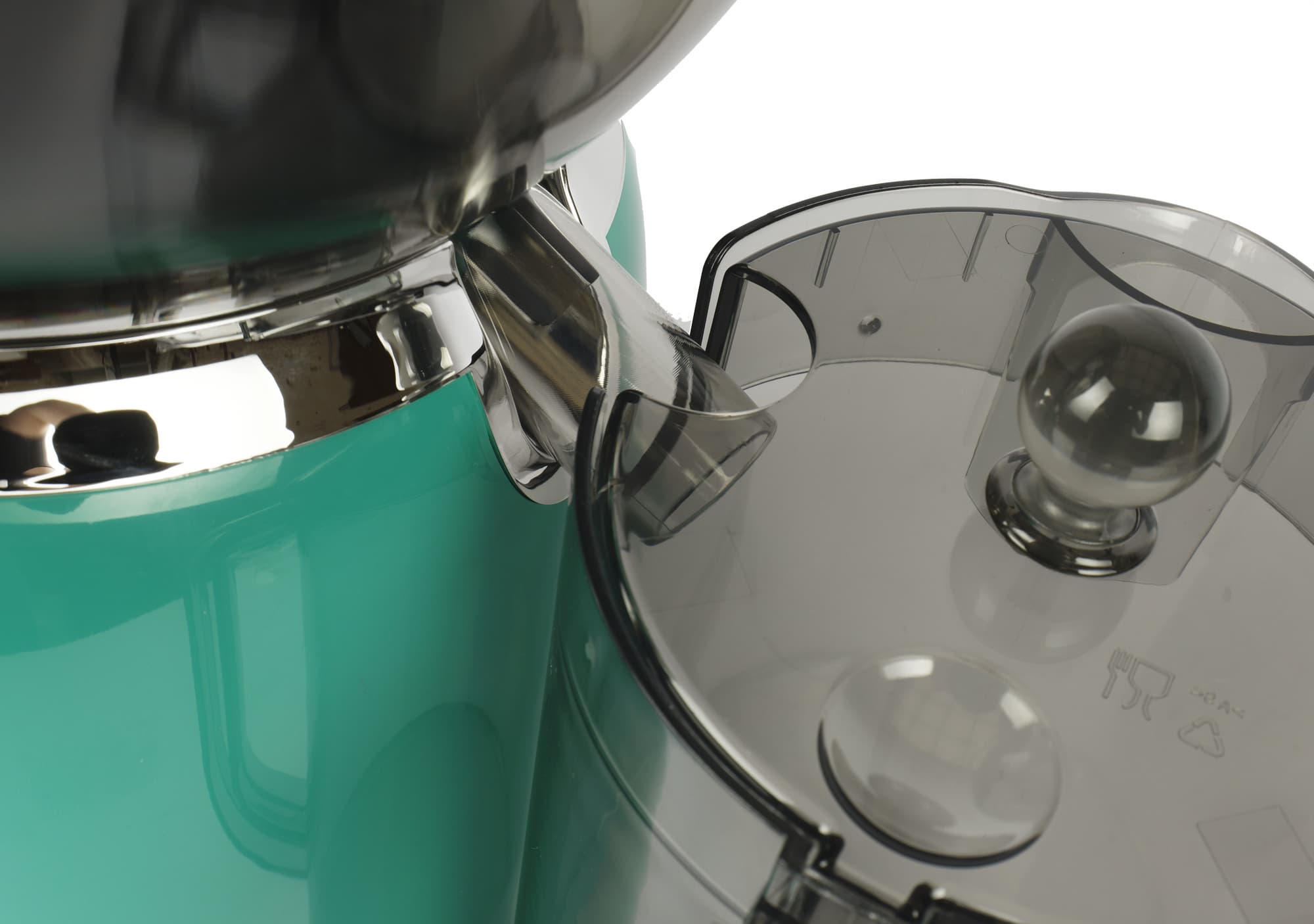 Маленькая белая точка на фронтальной стороне чаши — это отметка максимального количества жмыха, при достижении которой емкость следует очищать.