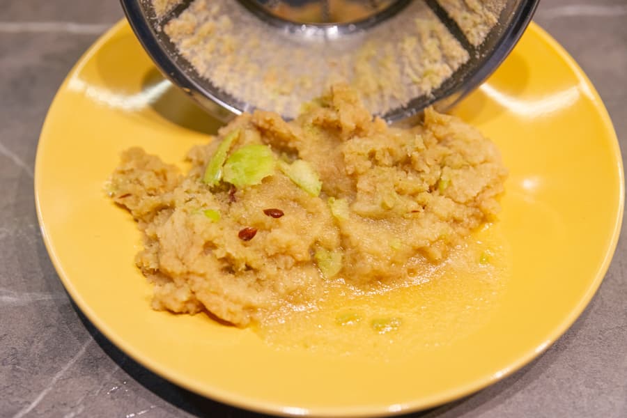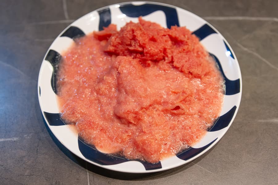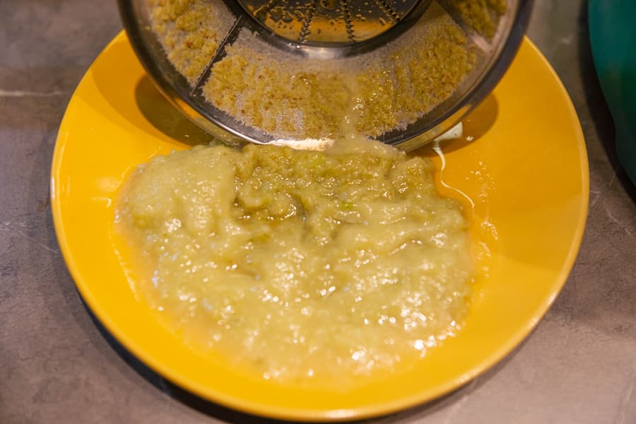 В мокром жмыхе без отделившегося сока остались лишь пара мелких семечек и пара шкурок небольшого размера.