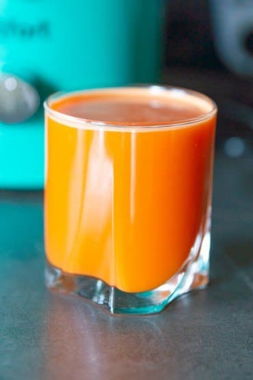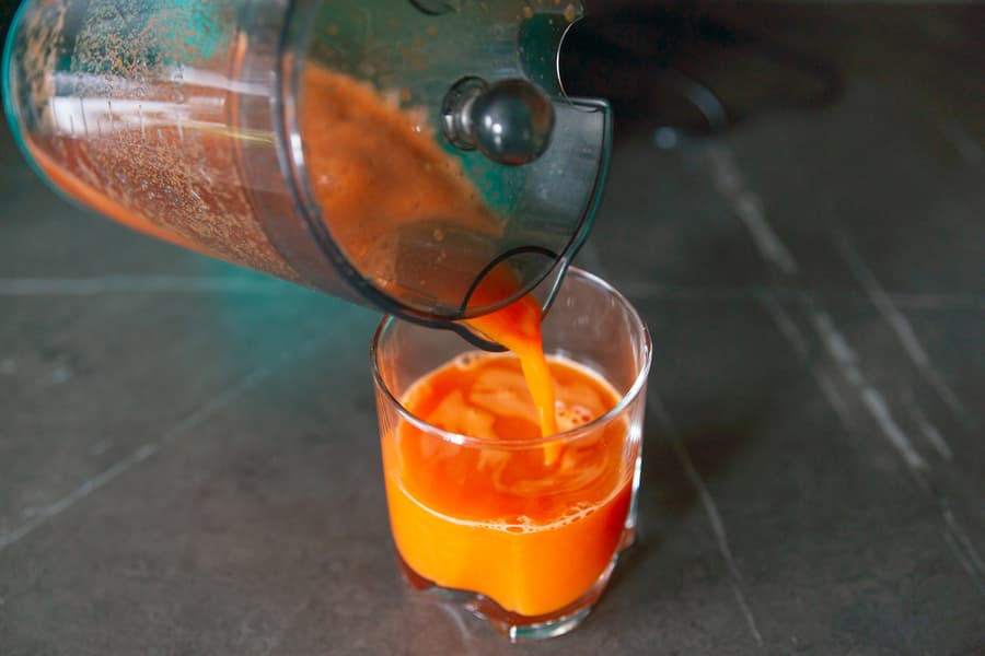 Соковыжималка легко справилась с килограммом корнеплодов и превратила их в плотный оранжевый сок со средним количеством пены.