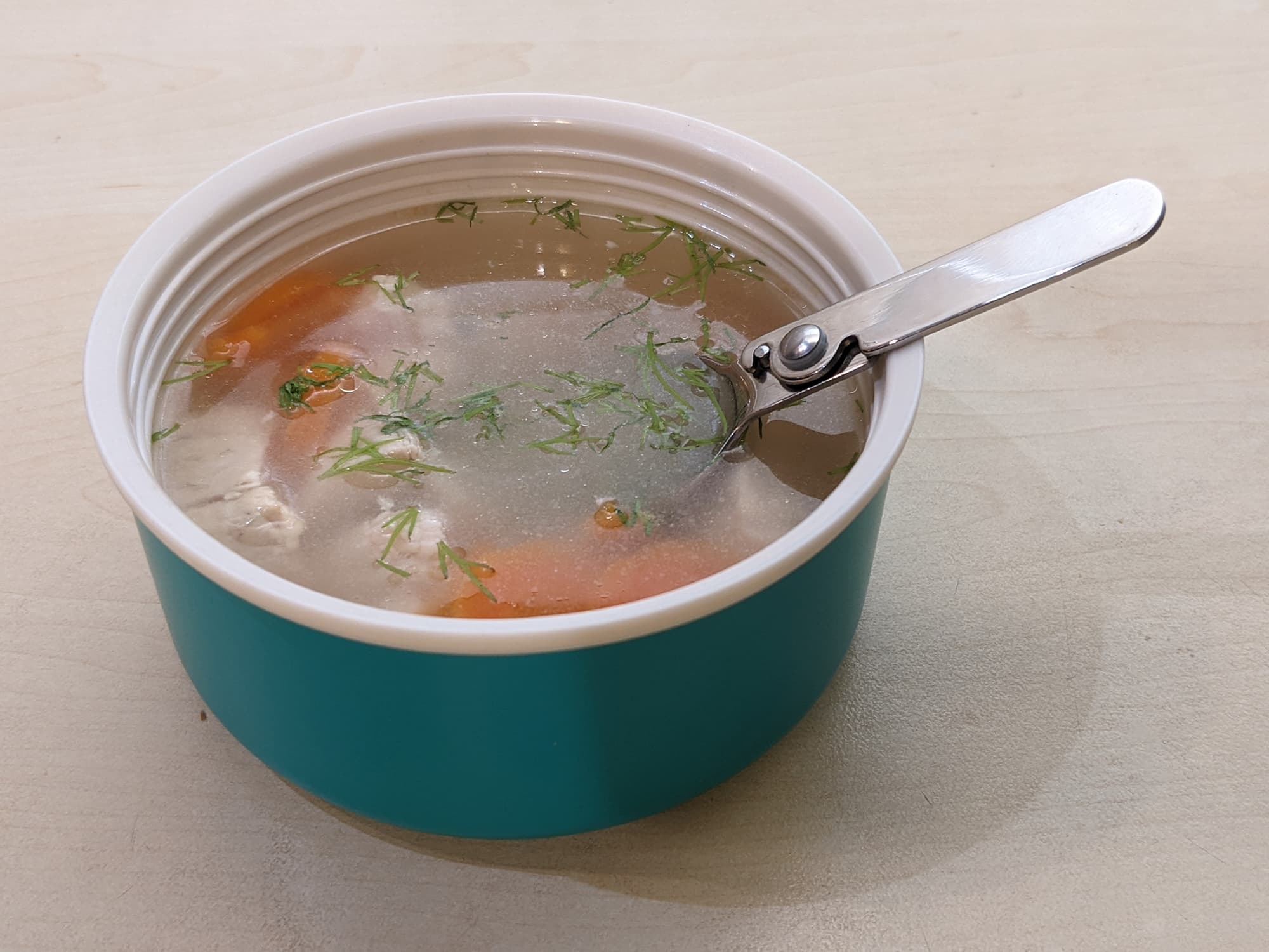Но сперва надо к нему приспособиться и понять, для чего оно подойдет, а что с ним лучше не делать. По всем параметрам он предназначен для существенного обеда на столе или заменяющих его предметах: поставить, спокойно раскрутить, переложить еду в крышку-миску и приложенной ложкой съесть. При необходимости повторить. Для быстрого перекуса или питья «на весу» его использовать тоже можно, но не слишком удобно. Он достаточно широкий, и удерживать его одной рукой сложновато.