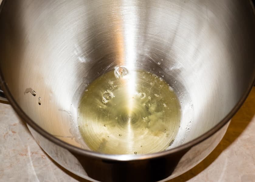 Обычно варка сиропа занимает больше времени, чем взбивание белков в планетарном миксере. Поэтому сначала поставили варить сахар с водой. Минут через пять после закипания приступили к взбиванию белков.