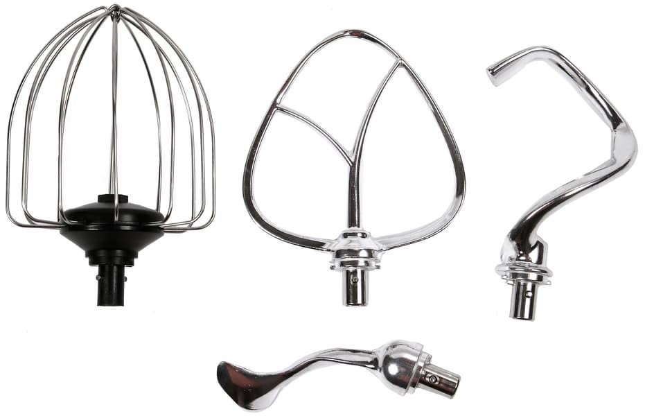 - насадки: венчик для взбивания, насадку для смешивания, два крюка для замеса теста