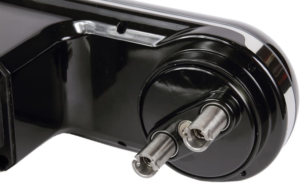 Прибор оснащен двумя приводными валами. Валы стальные, с запрессованным поперечным штифтом для передачи крутящего момента на насадку. Насадки фиксируются в миксере обычным для такого типа креплений способом: достаточно совместить пазы на валу с выступами на насадке, вставить до упора и повернуть против часовой стрелки.