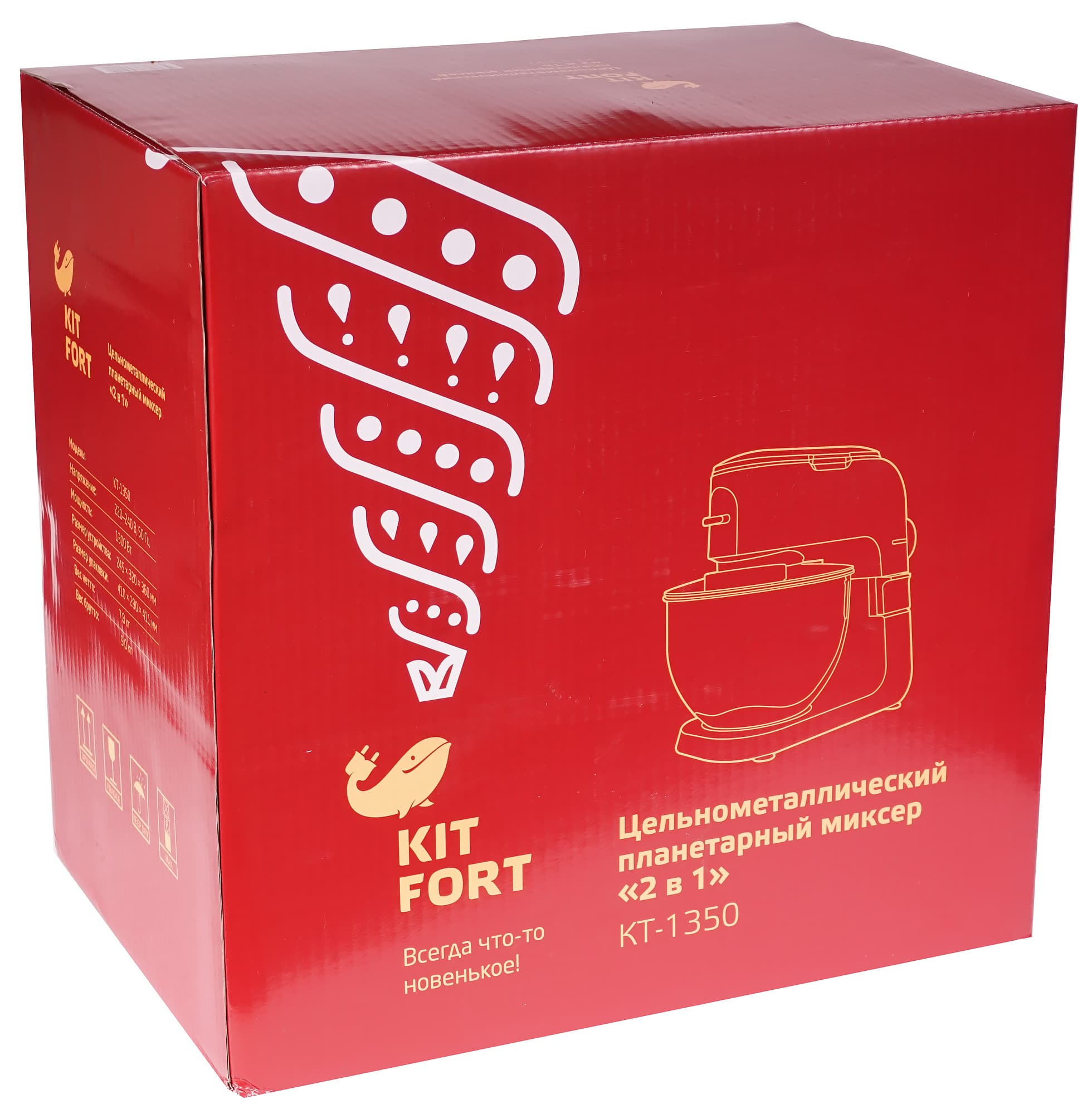 Kitfort KT-1350 заключает в себе достоинства планетарного смешивания и возможности мясорубки с различными насадками. В ходе осмотра мы изучим внешний вид прибора, в ходе практического тестирования — качество реализации функций, заявленных у аппарата. Тем более, ряд блюд, традиционных для нашей кухни, требуют как раз наличия двух этих устройств: мясорубки и тестомеса.