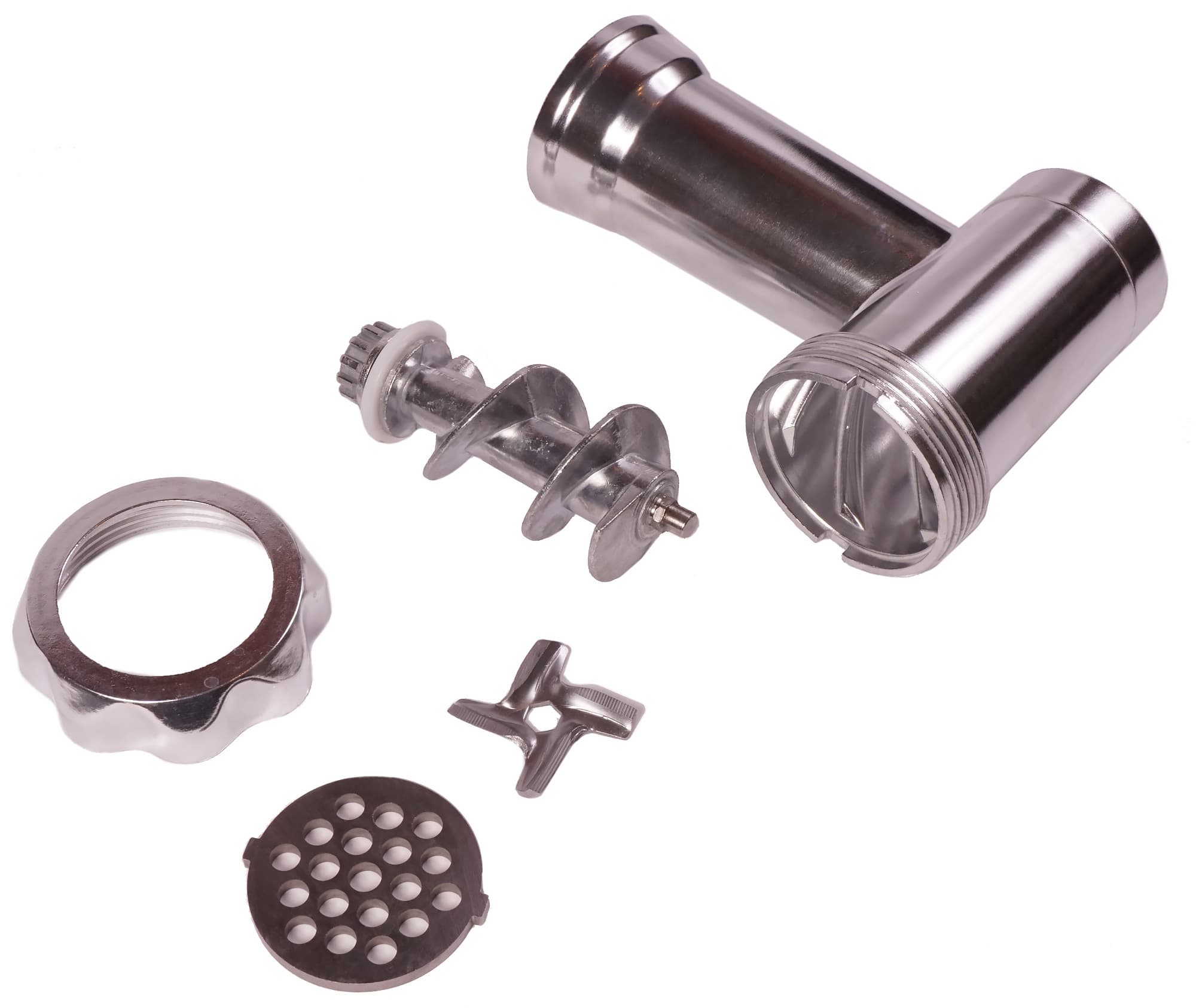 - собранную насадку-мясорубку (корпус, шнек, нож, решетка с крупными отверстиями, кольцевая гайка),