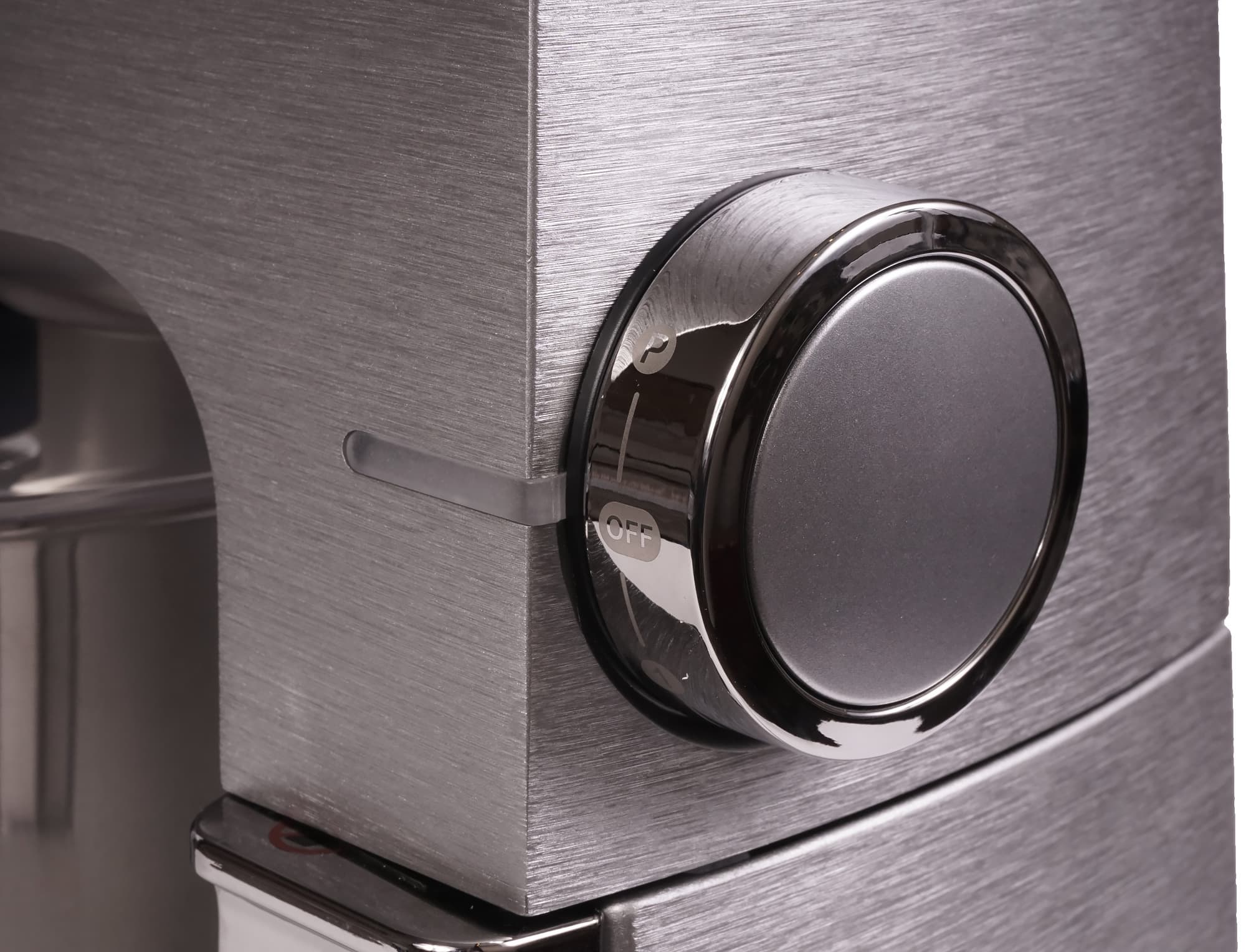 Первый момент, на котором хочется акцентировать внимание, это габариты. Размеры корпуса основного блока не так велики, как у других планетарных миксеров такого класса, при этом вес внушителен — без аксессуаров моторный блок весит 6,2 кг.