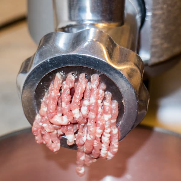 Согласно методике, следует вычислить производительность мясорубки при переработке конкретного вида и сорта мяса. Для данного теста наши эксперты используют постный свиной окорок, не подвергавшийся заморозке. Мясо очищается от пленок и жира и нарезается на куски, способные легко пройти в горловину мясорубки. В данном случае прокручивали мясо через решетку со средним диаметром отверстий на максимальной (шестой) скорости в течение одной минуты.