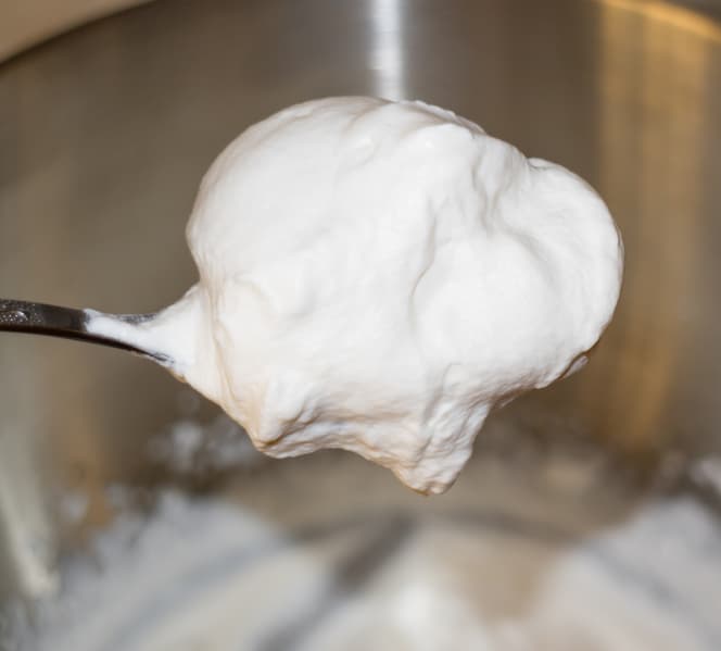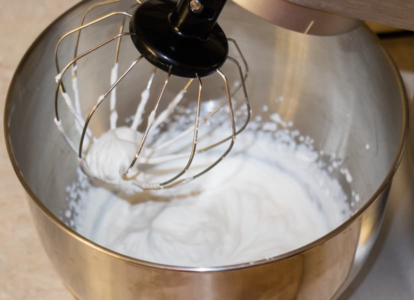 Данный тест не только продемонстрирует нам способности миксера по взбиванию, но и поможет определиться с минимальным объемом продуктов, успешно перерабатываемых в шестилитровой емкости. 200 мл хорошо охлажденных сливок 33%-ной жирности вылили в чашу. Начали взбивание, плавно увеличивая скорость до пятой. После примерно минуты работы установили шестую, максимальную скорость. Минуты через три добавили пару ложек сахарной пудры и продолжили взбивание, плавно уменьшая скорость до полного отключения миксера в течение минуты.