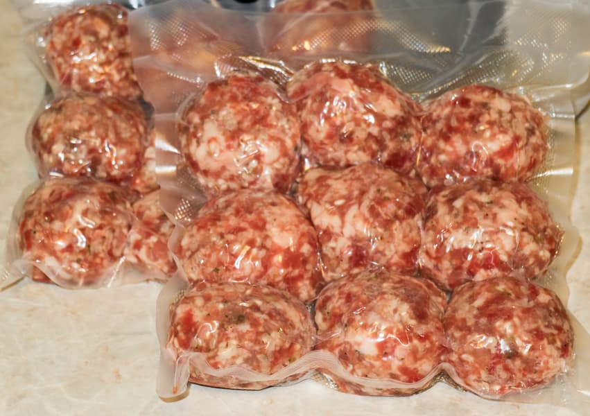 Немного подморозили, чтобы мясные кусочки не потеряли форму, и завакуумировали. Отличный полуфабрикат для приготовления горячей и свежей пищи в будние дни. Главное — подольше тушить или готовить под давлением.
